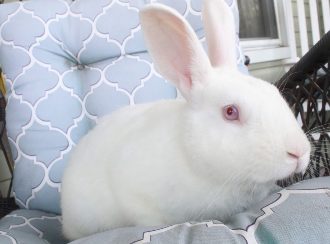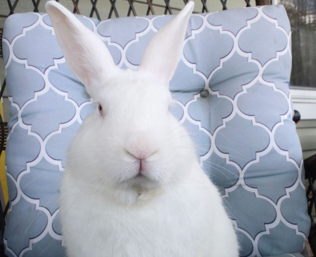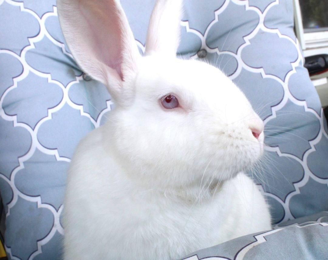 Hi everyone my name is Ranger and I was recently taken into the rescue when a local shelter found themselves a bit overwhelmed with too many buns. I was caught as a stray and came running right up to my rescuer. I was especially lucky to be caught because since I am all white it would have been extremely hard for me to disguise myself against predators. I am a New Zealand mix male bun and am full grown at 6 lbs. I have now been neutered and vaccinated against RHDV2. I have a clean bill of health. My foster mom says since being neutered I have been using my litterbox quite well which she really seems to appreciate. I am sooo sweet and friendly and would probably be a good candidate for any spayed females searching for a friend. I love my ears rubbed and dont even mind being picked up and cuddled which is rare for rabbits. I am eating a proper diet of Oxbow Adult Timothy Pellets, timothy hay and a nice big bowl of water. I also enjoy my daily salad of spring mix, romaine, bok choy, carrot tops and some small treats like banana, apple, and carrots. Would you consider opening your heart and home to a handsome fella like me?