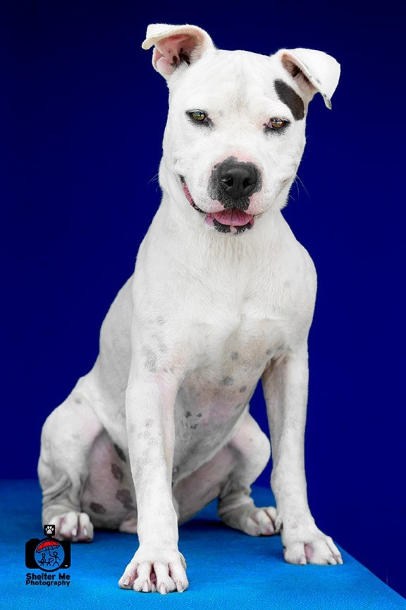 Tiny is a Pit mix that would prefer to be in a home without small kids. He can take a while to warm up to some men and prefers women. He requires a fenced yard for potty and play time. He is heartworm positive but is on prevention and seems to be healthy.