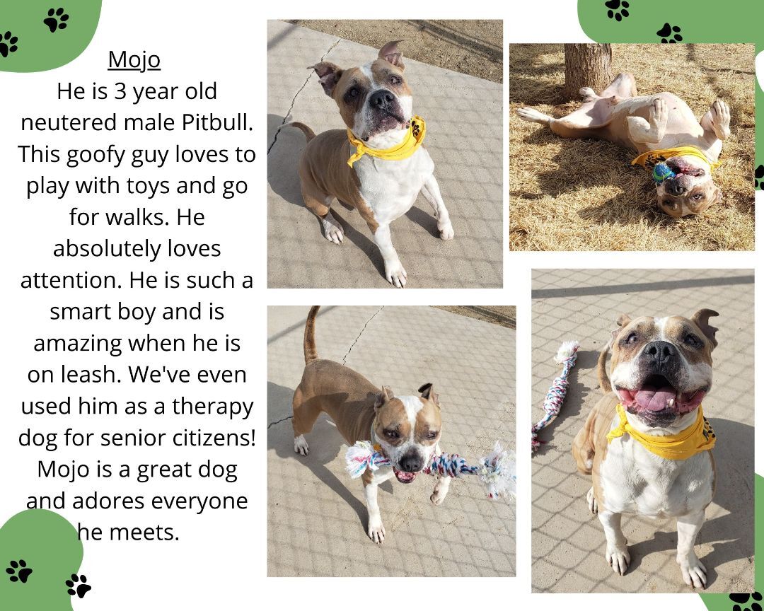 Mojo absolutely loves to play ball and loves all his toys! He walks pretty well on leash and happy to go on walks with you. Were not sure about other dogs, cats or children yet and hope to update his information soon once we know more about him. Mojo is looking forward to his human teaching him some self control skills - silly boy. :) Were not sure whether he is house-trained. Mojo will need an active household to keep him happy and healthy. By the way, Mojo is neutered, microchipped, and current on all shots -- all ready for a new home. For more information about me, please call the Douglas County Animal Care and Services (DCACS) at 775-782-9061 or the Douglas Animal Welfare Group (DAWG) at 775-267-7325. Or come meet me at the Douglas County Animal Shelter (please call first to make sure Im still at the shelter). Click on Douglas Animal Welfare Group below for the address and directions. ALSO A "MEET AND GREET" WILL BE REQUIRED IF THERE ARE ANY OTHER DOGS IN THE HOUSEHOLD. ONE LAST THING! If you rent, you will be required to provide written approval from your landlord that you can have a dog. It needs to be specific, i.e. all dogs okay, no big dogs, specific breeds restricted, etc.