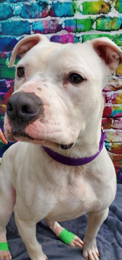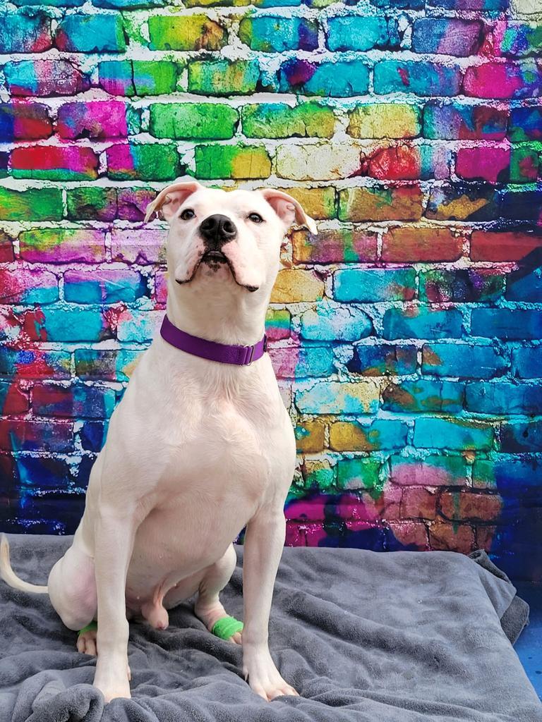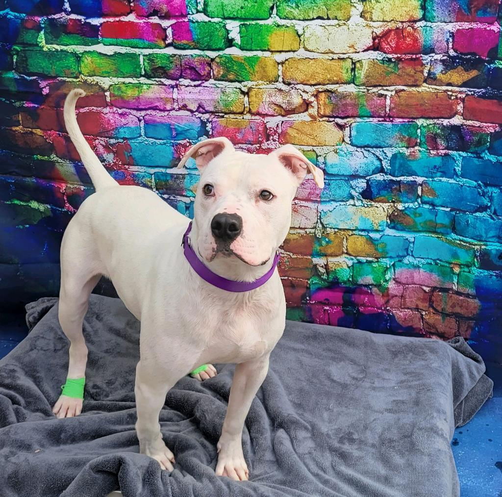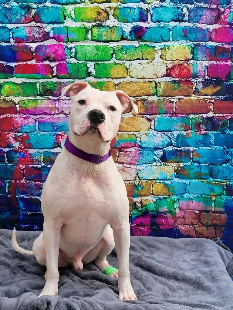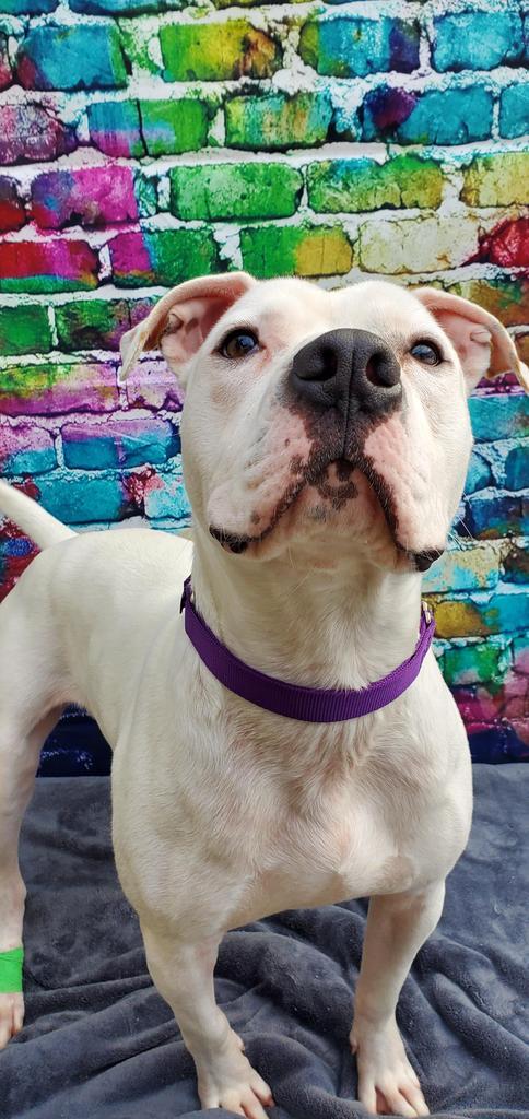Goose is a happy, healthy, sweet 2 yr old Boxer/pitbull mix. He loves to run and is an incredible ball player! He could live with a properly matched dog. Goose loves all treats and learns very quickly. An active family would be best for Goose!