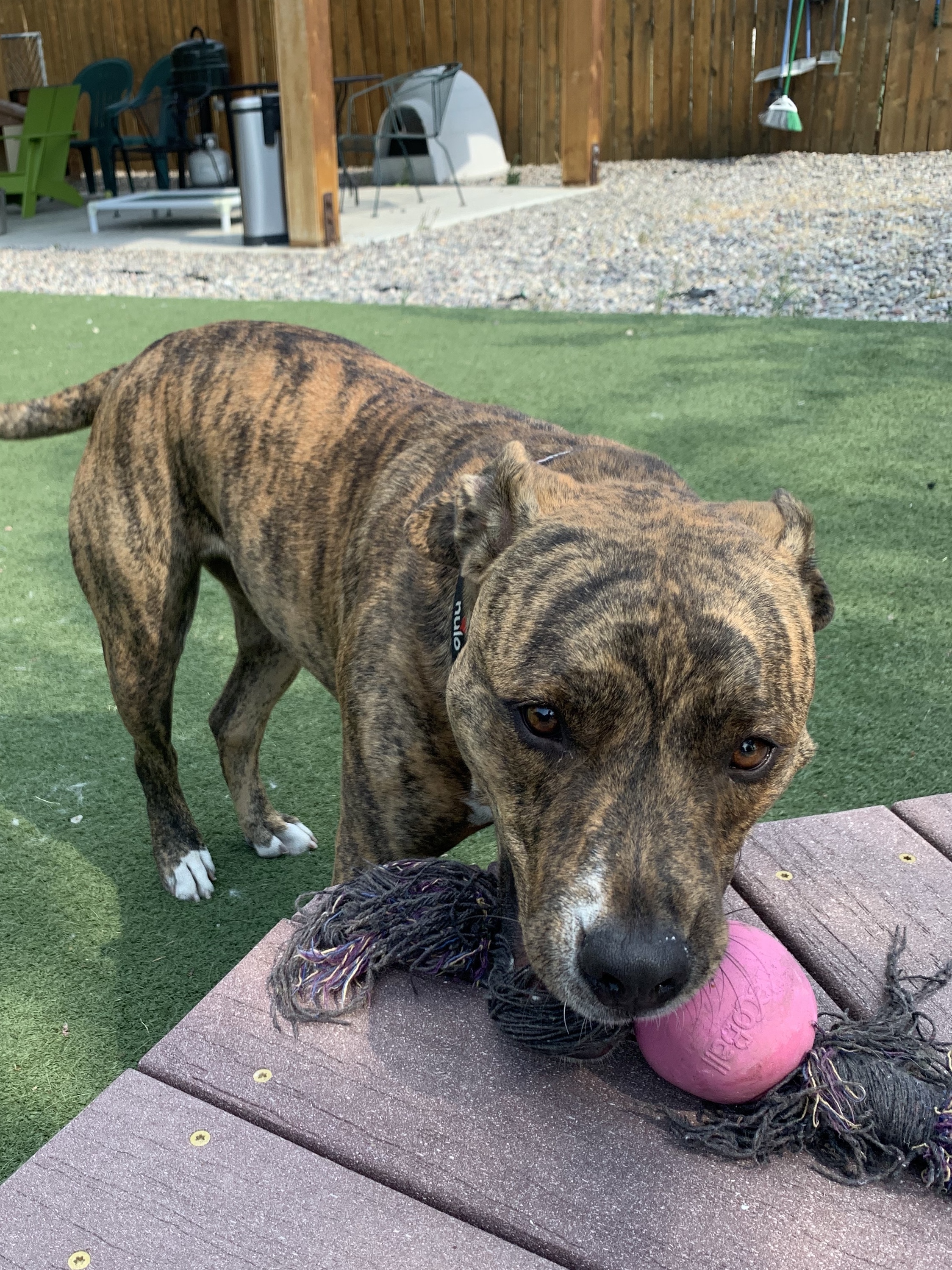 Meet Griffon, a solid ball of puppy energy. 2 year old Griffon loves to get out and zoom in the morning, and then settles in for a nice game of tug-of-war. Always ready for belly rubs, Griffon loves attention from his people. In his previous home, Griffon became protective of his people and home, and he takes a bit longer to trust new men. Griffon needs an owner who will work patiently with him to get him the training, socialization, and exercise that he needs.