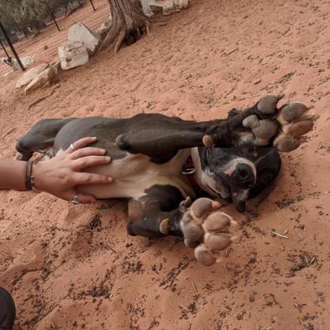 This lovebug is Alfred and he adores his people! He is shy at first but once he gets to know and trust you, hell be your new best friend. He has the best wiggle butt and gets so excited to see and hang out with his people. He enjoys long hikes, car rides and golf cart rides. Hes the ultimate adventure partner! He likes to play tug and bounce around. He knows a lot of tricks, sit/shake/down/speak to name a few. He would do best in an adult only home due to some stranger danger but he is so deserving of loving owners! Please ask about Alfred today!