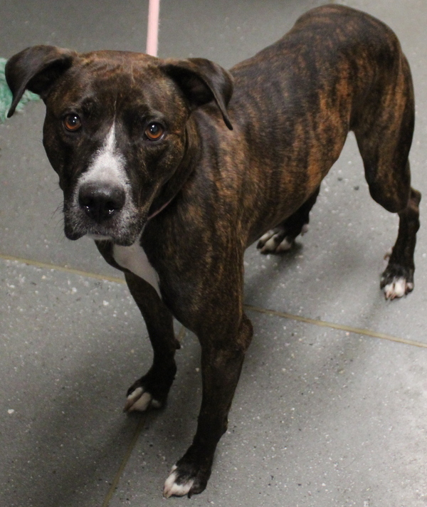 Primary Color: Brindle Secondary Color: White Weight: 51lbs Age: 3yrs 0mths 2wks Animal has been Neutered