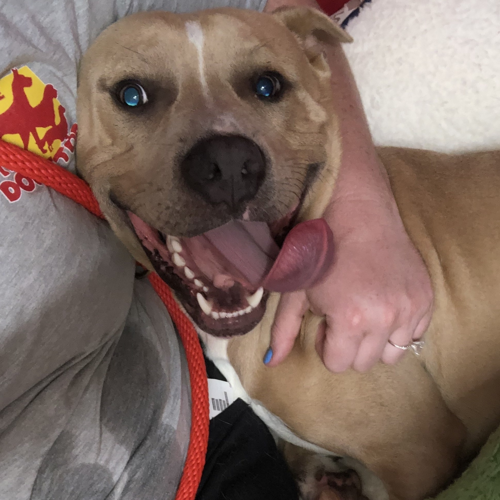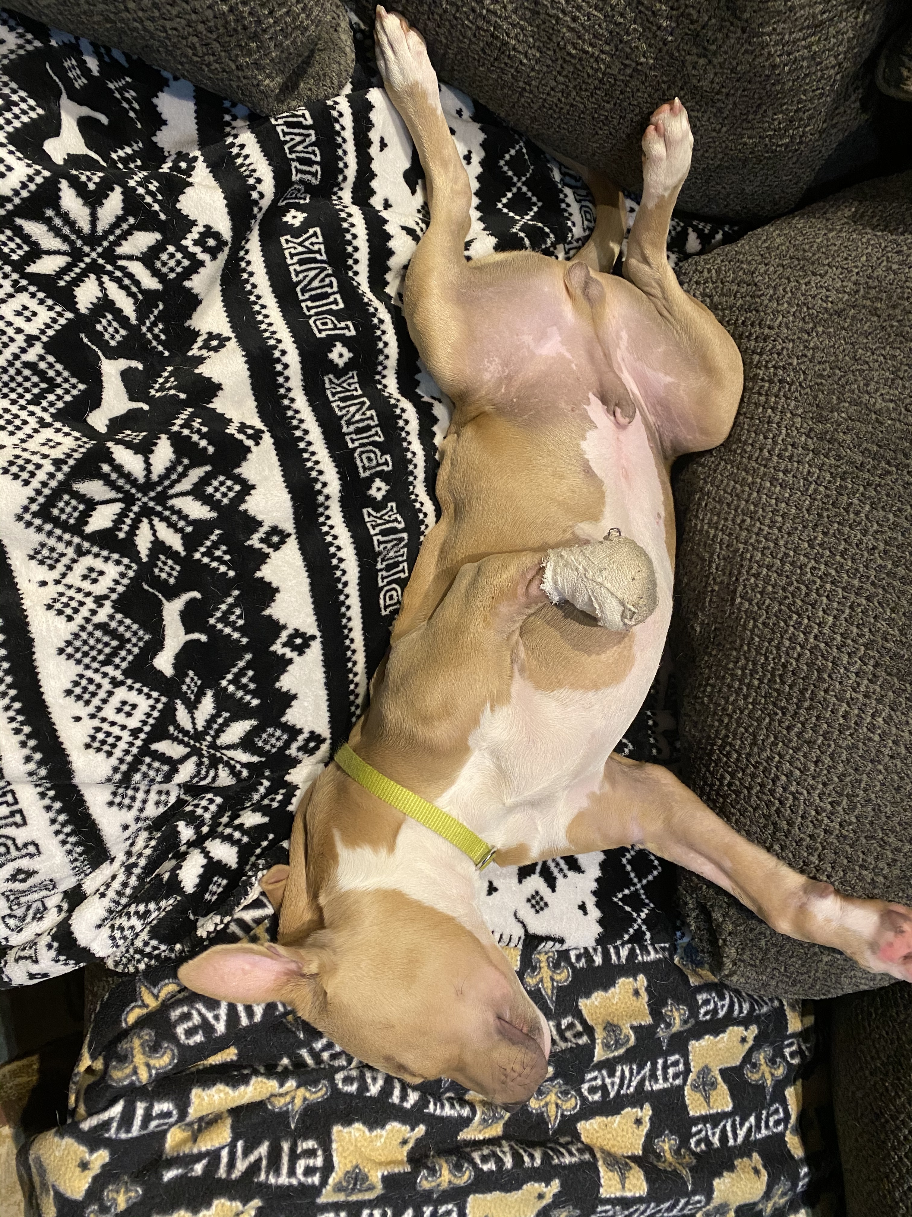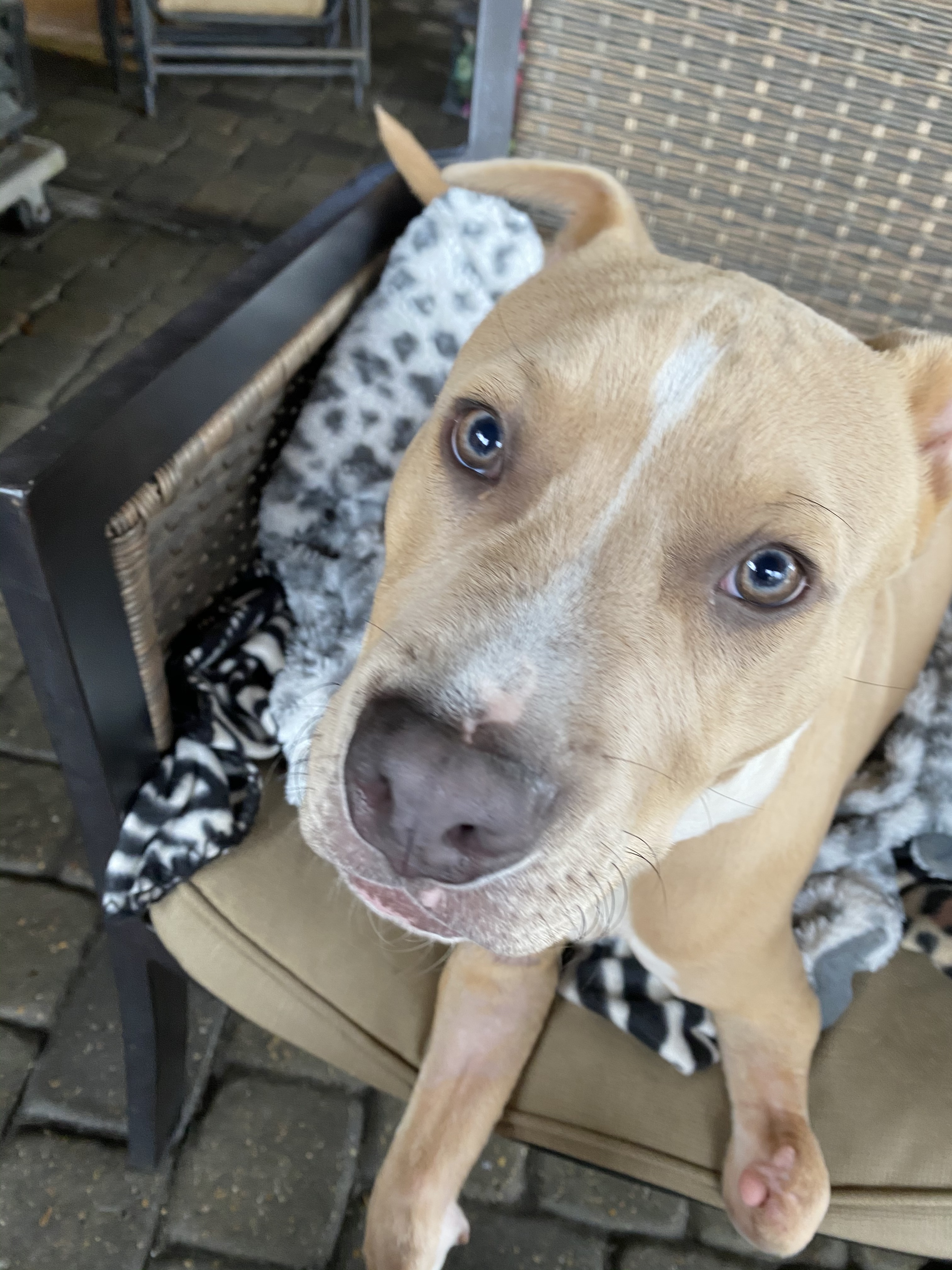 Punkin is an adorable pitbull mix who was born in Florida on June 18, 2020. He was the only one in the litter born with carpal flexural deformity. The first vet who saw him in FL recommended euthanizing him because his first owner didn’t have the time or the money to invest in him. Punkin is a special boy who loves giving kisses and being next to you. He had part of one front leg amputated because it had no growth plate. He is quick with running around regardless of his legs. He uses his back legs with jumping up or getting down from the sofa. He is a fearless boy who loves everyone he meets! He is great with other dogs and just wants to be by them. He is good with potty training. He’s a pretty calm puppy unless he is wanting to play with other dogs. He’s good on car rides and is not destructive so he is not in his crate except to be fed. He is very treat motivated. Punkin is expected to be in the larger side of the medium size range when full grown. Please note: as with most rescue puppies, we have no way to guarantee this puppy’s breed or size potential. PLEASE READ BELOW: If you are interested in meeting and/or adopting, the first step is to please visit our website to complete an application and read all of our FAQs: https://www.takepawsrescue.org/adopt **An inquiry/question on Petfinder is NOT an application. All known details about our animals are posted on their profile and updated daily. Other info would be discussed in detail with the foster during the application review process. Due to the number of inquires received (hundreds daily) we ask you submit an application on our website (a single application can be used for any dog with Take Paws Rescue). The adoption fee for puppies covers initial deworming, puppy vaccinations, microchip, and spay/neuter at the rescues approved vet at 6 months of age. Please see our website for more information. For additional information, including the adoption process and our adoption fee scale for all our adoptable pets, see our FAQs page: https://www.takepawsrescue.org/faq *Take Paws Rescue saves dogs from high-kill shelters in Southeast Louisiana, owner surrenders, and discarded dogs with uncertain futures. All of our puppies live in foster homes where they are socialized, and well cared for. An application will be required to make sure it’s the perfect match! **Any breed labels used by Take Paws Rescue, its employees/volunteers, or on vet records provided cannot be guaranteed. Breed labels are given based on information obtained during intake and/or best guesses based on appearance and/or temperament of the dogs and Take Paws Rescue gives no assurance to the accuracy of these labels. Labels are necessary for postings to many animal networking sites, such as Pet Finder, and are no way a guarantee. Additionally, exact age and potential size cannot be guaranteed.