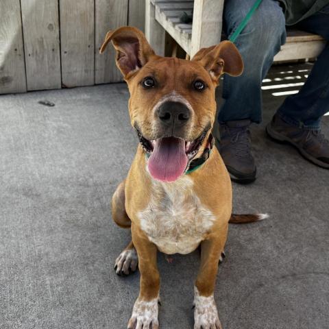 Yoshi is a high energy, super loving pup! Hes a complete cuddle bug whos ready to jump into your arms and would do best in a home that could give him a lot of attention and training. This ones a lover not a biter, so hed be a great addition to family hikes, beach expeditions and would be a fun companion for dog park adventures. Yoshi gets along great with other dogs as he is super playful, but can be a bit in your face. Since hes a tad bit of a jumper, we would recommend him going to a home with kids 12 and up. Treats are the way to his heart and a great motivator for training this adventurous big guy. Hed need some help with potty training but would be happy to comply if you slip him a bone or two. Come by our Point Richmond facility to meet this handsome devil.