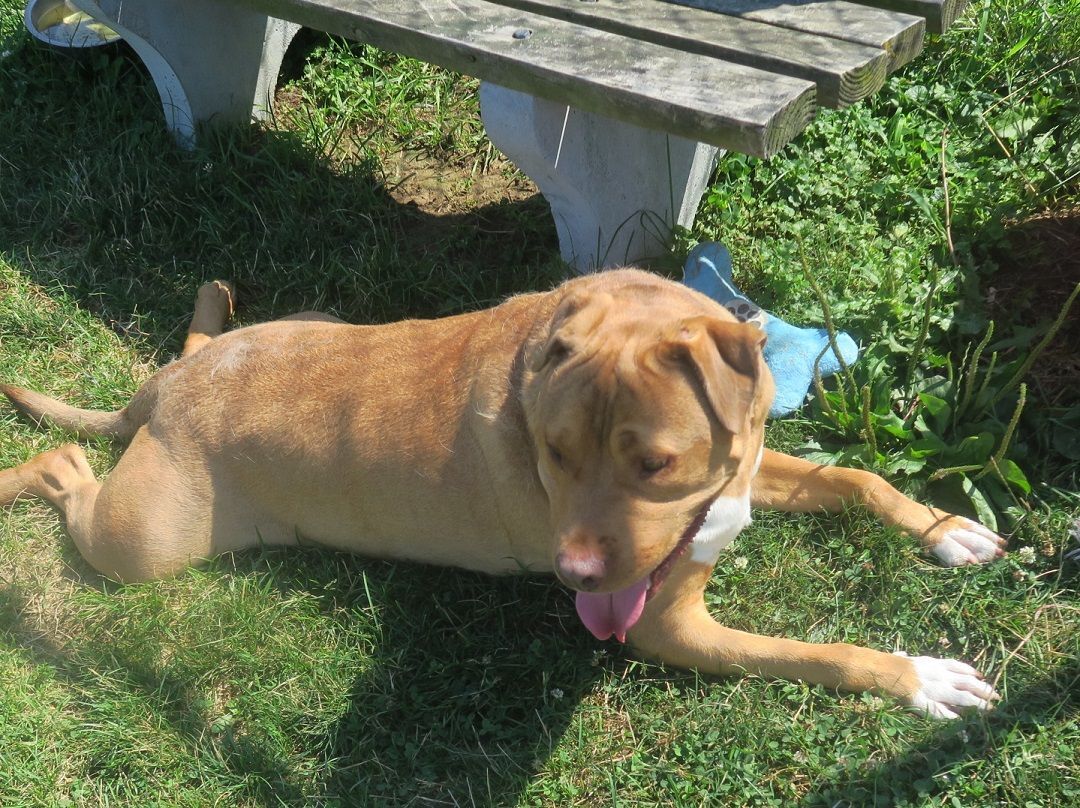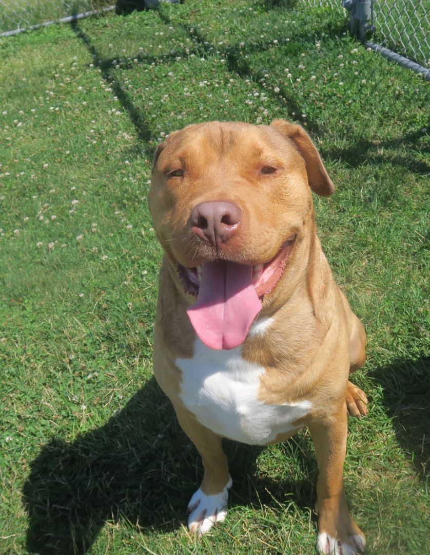 This big guy is Rusty. Rusty lost his owner and now is in need of a new home. Approx. 5 years old and weighing in at 93 lbs. He could shed a few pounds. He is a strong guy, but sweet as can be. *We Have Restrictions on Pit Bull Adoptions*