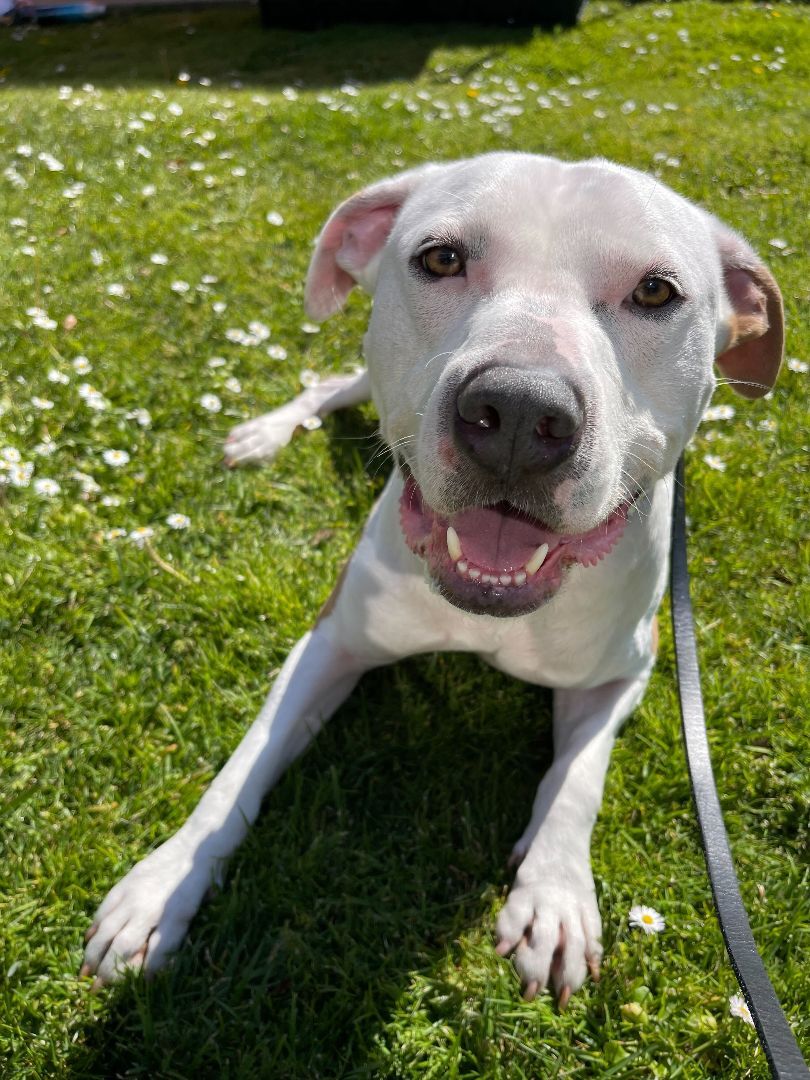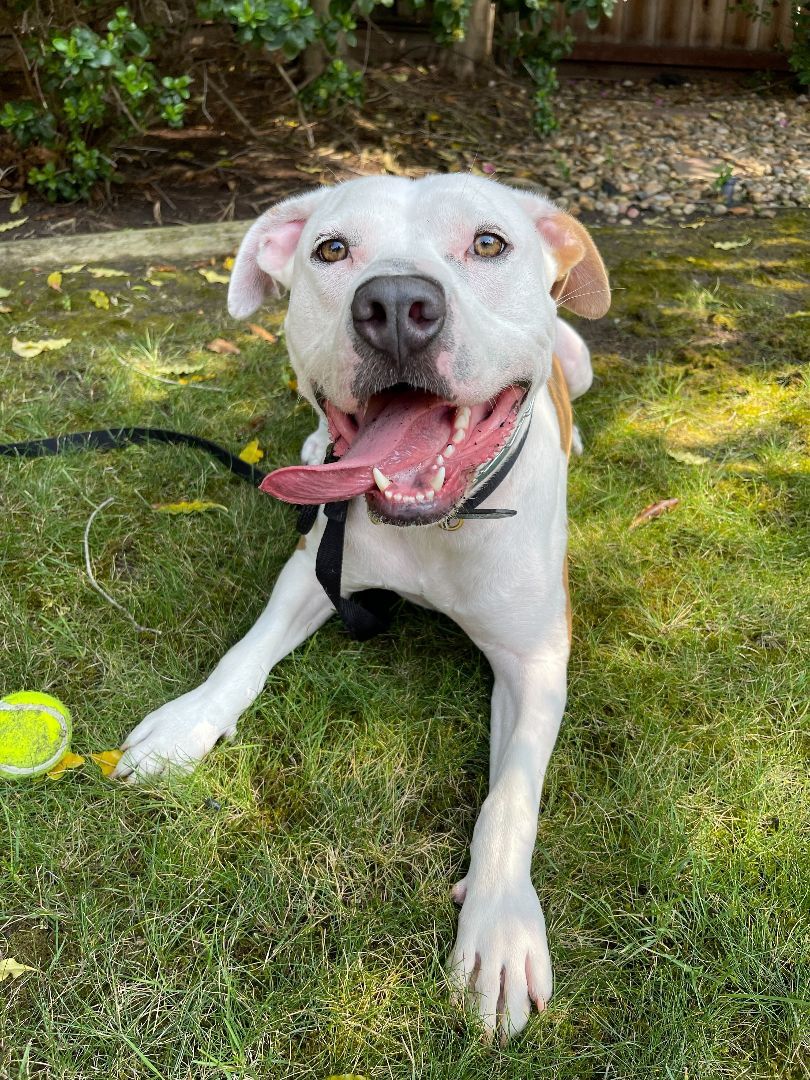 MEET LOUIE! Louie is an affectionate rambunctious pitbull mix. He is around 57lbs and 3 years old, but has to spirit of a big puppy. He’s the type of dog that loves to run around the house with his toys, but then will lay on the couch for a snuggle or happily look outside the window for hours. Louie loves everyone he meets, but due to his powerful wiggles and excitement, may be a bit much for young children so he is looking for an adult only home! He wags his tail nonstop when someone gives him a glance. Louie is housebroken and crate trained. He is very treat motivated and will try every training command he remembers to try and get the treats in your hand. While Louie is very people friendly, his new family should be versed in resource guarding body language. Louie should be an only dog. He does currently live in foster with other pitbulls, but they only meet during walks. He would do best in a quiet suburban or rural setting. We are looking for a strong breed savvy adopter who loves a silly face, loyalty, kisses and lots of snuggles. His forever parents must be dedicated to maintaining and continuing his training. Louie’s trainer has dedicated a complimentary 90 minute transition training session. If you are interested in Louie, please see our criteria below before applying. Pit bull & strong breed adoption criteria - Must be over 25 years of age to adopt a Pit Bull, Pit Bull mix, or strong breed dog. - Written landlord permission or a pet policy allowing the specific breed is required for adoption approval. - A virtual home visit may be required. - Training or breed experience is required as part of the adoption. - Agree to not take the dog to dog parks or dog daycare. If you are interested in meeting please fill out an application at our website www.gobeyondrescue.org/adopt. Our adoption fee is $450 and includes spay/neuter, microchipping and up to date vaccines. We adopt within 200 miles of San Francisco.