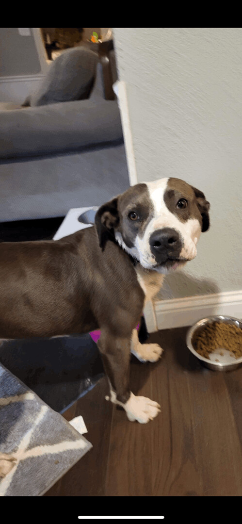 ADOPTION REQUIREMENTS FENCED YARD My name is Kangaroo Jack. I ignore my foster Mom when she calls me such a long name so she just calls me Jack or for some odd reason she calls me Sampson. She said that’s what I look like. I’m pretty laid back and easy going. I am only about a year old so I can get very very playful. I’m bouncy, rolly, and I love to smile. I don’t fully understand my size or strength so I like to push myself into people and the smaller kids think I’m rough but I don’t mean to be. I just want to play! I’m not mean or aggressive I’m actually pretty sweet despite my looks. I do well on the leash and I enjoy car rides. I am, for the most part, potty trained. My foster Mom says I like to mark and I’ve done that in the house a couple times but I’m getting much better and haven’t done that recently. My foster Mom says I do require a fenced yard. She wouldn’t recommend cats because I have tried to chase a few. They are just kind of suspicious to me. I’m wonderful with kids. They are lots of fun to run and play with! I hope you are my new forever home. I can’t wait to have a family of my very own to love forever. If you would like to meet Jack, please fill out the adoption application below (copy and paste to your browser) and we will get back with you as soon as we can. https://form.jotform.com/211044942326146 Adoption donation pays for all vetting...neuter surgery (scheduled but not done at the time of this listing), a heart worm test, all vaccinations, deworming, flea prevention, a microchip and a wellness exam.