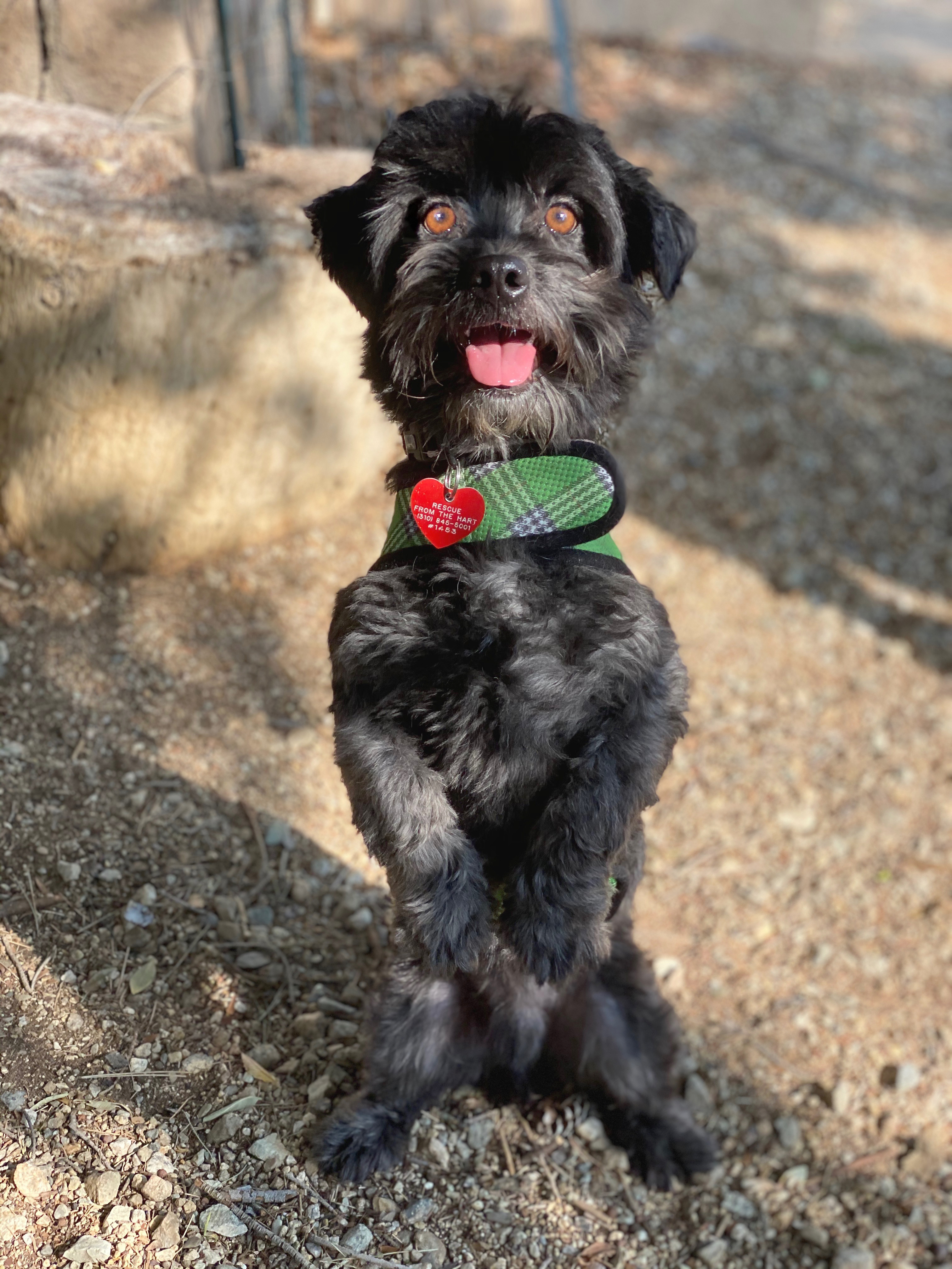 Meet Rogue! This 4 year old 21 lb poodle mix is incredibly shy at first, but soon becomes the bestest friend your dog could ask for. Whether it’s going on a pack walk, zooming around the house, or wrestling til the sun goes down, Rogue thrives with the companionship of other dogs. Playing catch is Rogue’s favorite activity and he has become quite the baller. He was recently asked to try out for the 2022 Dodgers and we are confident that he will score himself the spot as their star outfielder. Rogue loves going for walks and will dance in excitement when you show him his leash. Whether it’s just around the corner or going for a hike, Rogue looks at every walk as an opportunity for a grand adventure. Sadly, Rogue came from a horribly abusive situation and needs a lot of time and patience trusting new people (he’s not aggressive, just shy). Other dogs help him to feel secure and when this happens, he becomes a happy goofball. With time he will grow to love his person, his true mission in life is to be another dog’s best friend. Because of this, Rogue needs a home with at least one other playful dog and with a human who is patient and eager to take part in the rehab process. If youre interested in adopting this pet please fill out our matchmaking questionnaire (www.rescuefromthehart.org/adopt). We are volunteer based and will do our best to get back to you within 72 hours. Please do not call as our phone is intended for emergencies only. If we feel that one of our dogs is a good match we will set up a private meet and greet We do not have a physical location where you can come and meet all the dogs at once, so meet and greets may take a little time to coordinate. Our requested adoption donation is $350 and all adopters are required to fill out an adoption agreement.