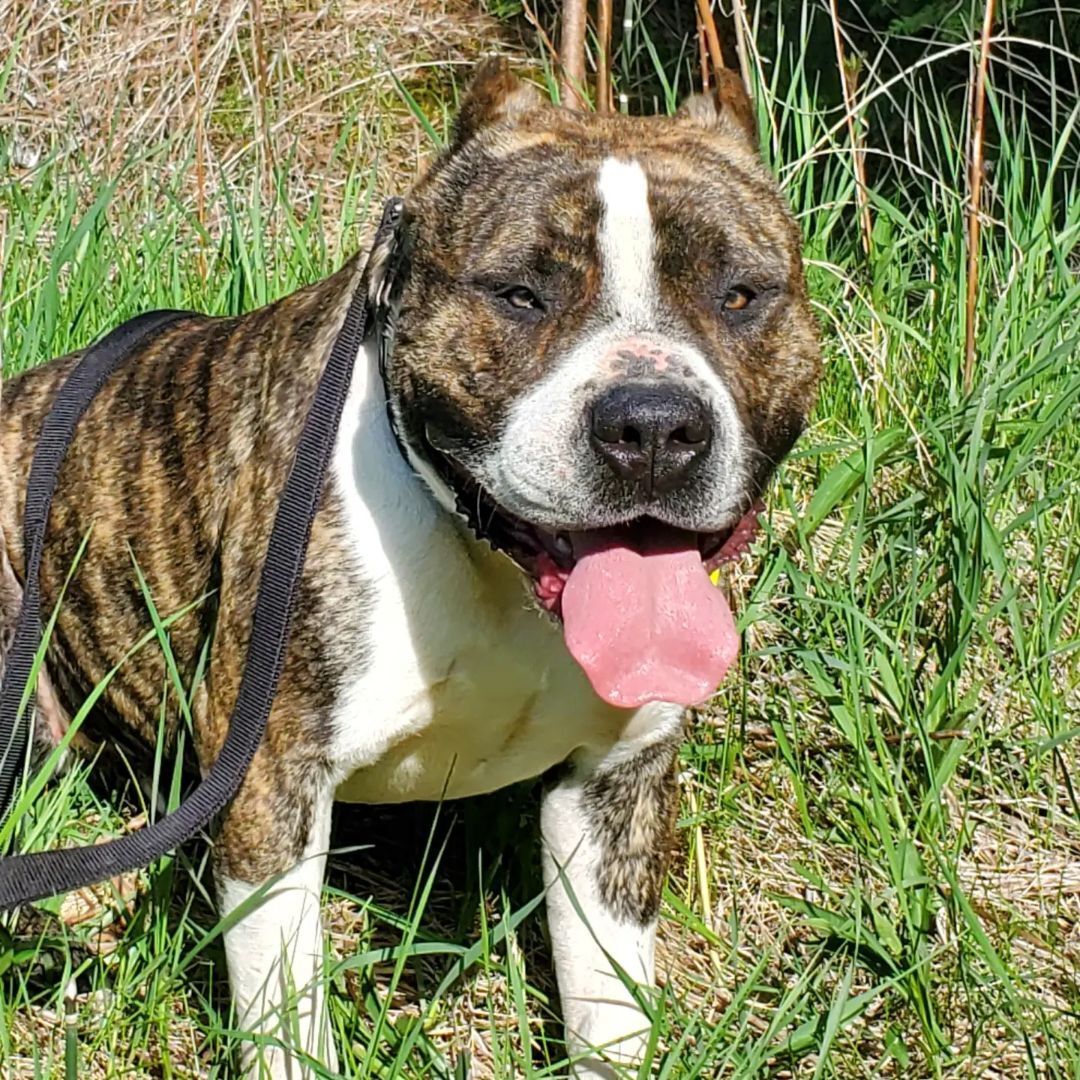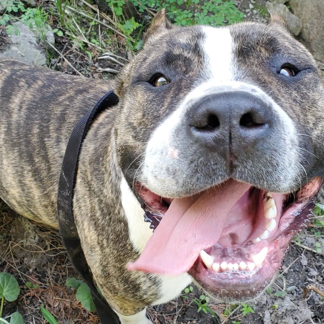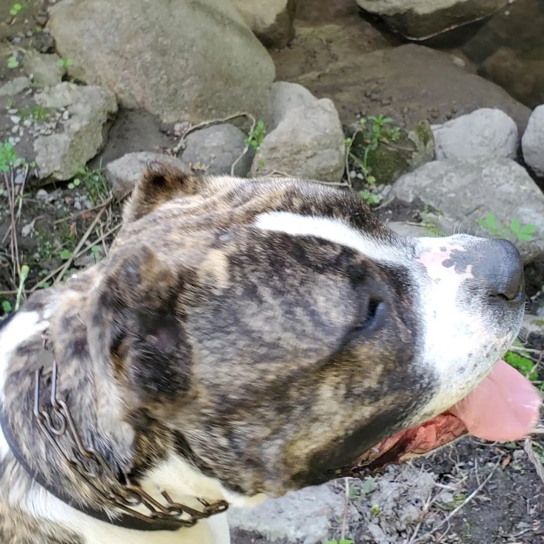 Bruno is handsome big boy Who was a farm dog before being picked up by animl services Hes very submissive with firmness Walks like a tiger Very food motivated Never met kids Hes awesome seeing dogs but likes his personal space Brunos issue is high stimulation He can get little rude with jumping and humping Once trust is built hes your best friend Loves to play fetch for few mins Structure is key to Bruno Hes such a stud