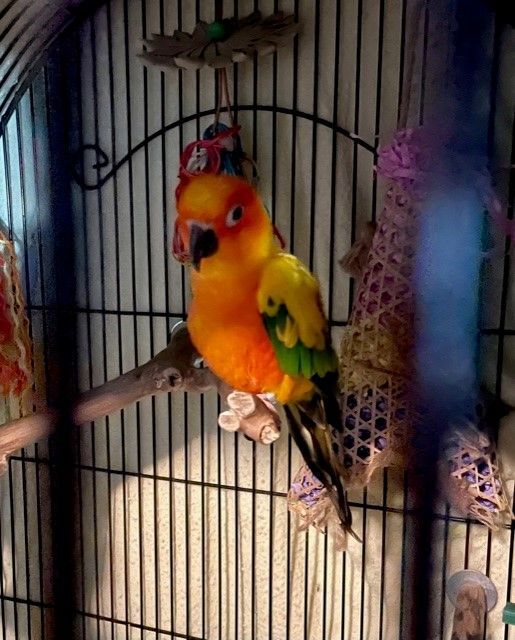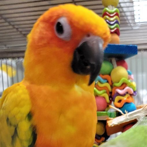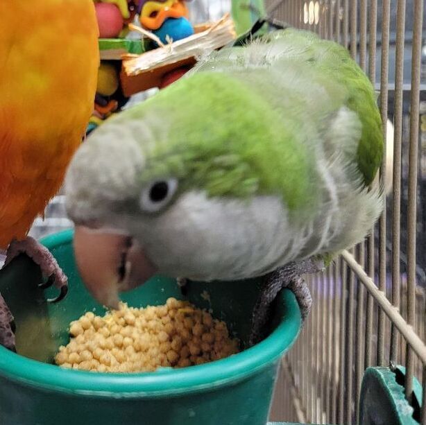 Name: Kiwi Age/Hatch Date: Age unknown but we know at least 5 years old Species: Quaker Sex: Male Adoption fee: $300. includes 1 year of virtual bird training with Animal Behavior Center which is necessary for everyones emotional and physical well-being, Do they talk?: yes Do they bite?: He has not been trained and is reportedly afraid of everything. We believe that he has not been introduced to the enrichment of building to help him become confident and comfortable. Do they get along with other animals?: Should always be supervised around other animals. No cats or ferrets. We do not adopt to families with cats or ferrets. Do they get along with kids?: Should be supervised with kids. Their story: Kiwi hasn’t received a fair shake in the pet trade except for his friend, Argon. If you are interested in Kiwi, then you need to commit to training him so that he can have a life without fear. If you would like to meet Kiwi (and Argon, who has her own profile), please go to Papayagorescuehouse.org, to fill out our adoption application. Since Kiwi is illegal in the state of Georgia, the only potential adopters to be considered will be from Quaker-friendly states. We will not separate them unless we see evidence of a lack of bonding. If you cannot adopt him, could you sponsor his stay at Papayago? You could either set up a monthly $35 donation in his name here: https://papayagorescuehouse.org/donate/ Or Please pick out a cage, toy, branch, or transition food for Kiwi here: https://www.amazon.com/hz/wishlist/ls/C468H7XXFL89?ref_=wl_share Name: Argon Age/Hatch Date: Approximately 10 years old Species: Sun Conure Sex: Female Adoption fee: $300. Do they talk?: yes Do they bite?: When she is unsure and pushed. Do they get along with other animals?: Should always be supervised around other animals. No cats or ferrets. We do not adopt to families with cats or ferrets. Do they get along with kids?: Should be supervised with kids. Their story: Argon was presumed to be male. She has lived with 2 other birds at one time but now only one other, a Quaker named Kiwi. Mom dropped the kids off for babysitting and never came back. Well, heres to not looking back because Argon and Kiwi are doing just fine. She eats pellet and is a very well-mannered, well-behaved Sun conure. She is a typical parrot so you need to not spoil her. If you would like to meet Argon (and Kiwi, who has his own profile), please go to Papayagorescuehouse.org, to fill out our adoption application. Since Kiwi is illegal in the state of Georgia, the only potential adopters to be considered will be from Quaker-friendly states. We will not separate them unless we see evidence of a lack of bonding. If you cannot adopt, could you sponsor her stay at Papayago? You could either set up a monthly $35 donation in her name here: https://papayagorescuehouse.org/donate/ Or Pick out a toy, branch, or treat for Argon here: https://www.amazon.com/hz/wishlist/ls/1LKR5GW2KFG7T?ref_=wl_share