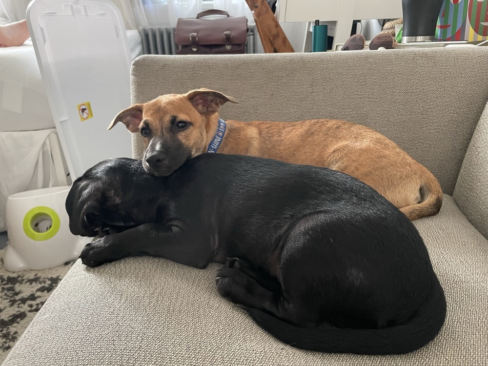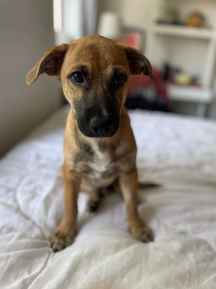 PICOLO: 4 months, 15lb male mixed breed puppy Personality: Picolo was rescued from Puerto Rico with his brother, and he can be a little timid at first. Once comfy, he is a goofball who likes his chew toys and getting your attention. Hes incredibly snuggly and loves to give kisses, and he likes to stick tight to his person. He also plays well with other dogs. He takes direction very well, and his house training is moving right along. Picolo is crate-trained and sleeps through the night, and hes friendly meeting people. This island dude is adapting to noisy city life, and he is looking for a nurturing family to keep showing him the ropes. Please apply here: http://www.barrkli.org/available-for-adoption