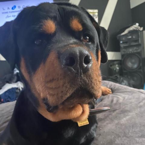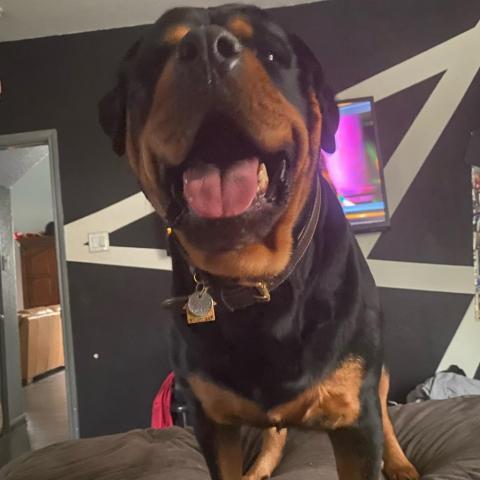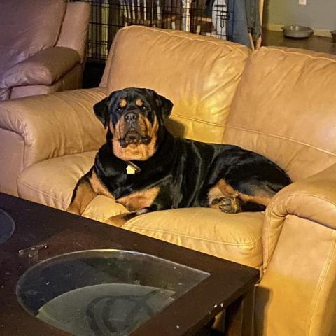Meet Runtly! He is an almost 3 year old 115 pound neutered male Rottweiler. He was rescued as a puppy who was living on a chain but has been living the great life with a wonderful adopter till he got terribly ill and had to make the gut wrenching decision to come back to rescue. Hes house trained and crate trained. He has not had interactions with other dogs or people since hes been kept in his home and yard. He would so best with a homebody without kids or other pets. If youre experienced and interested please apply!