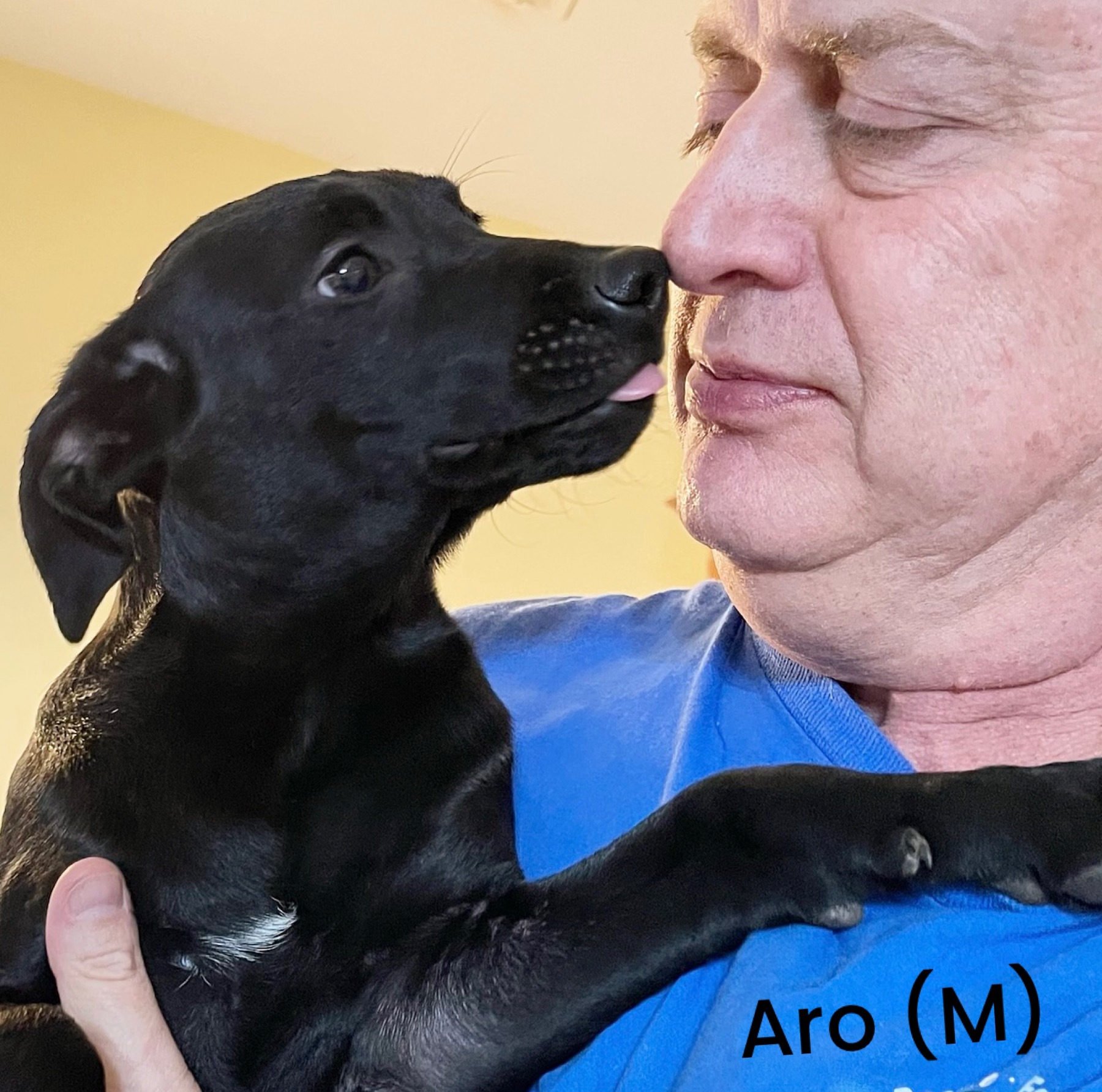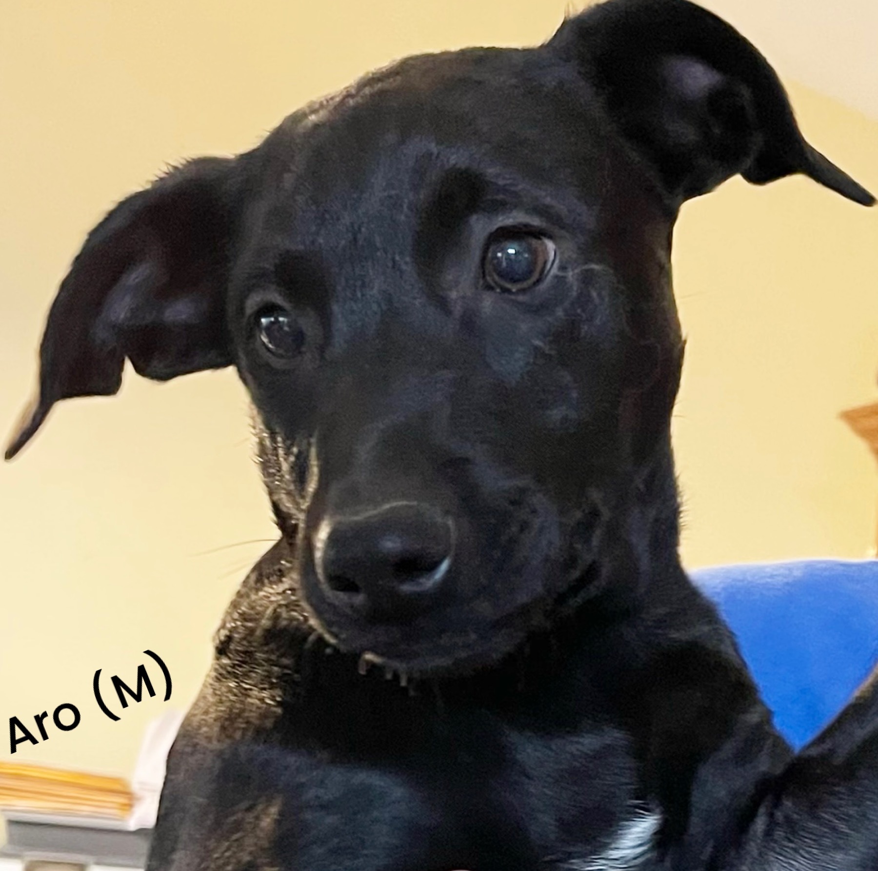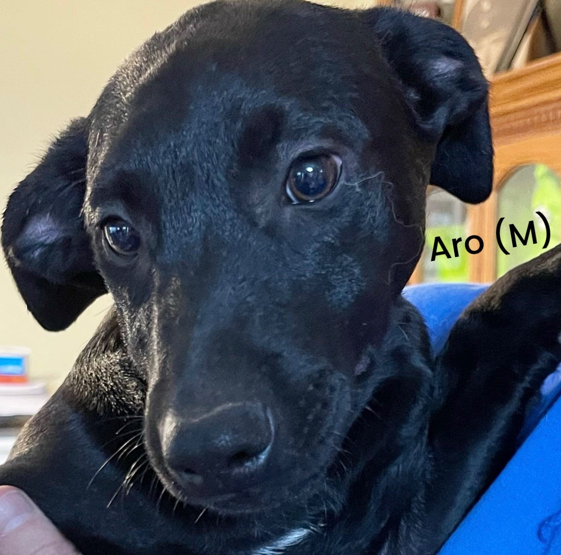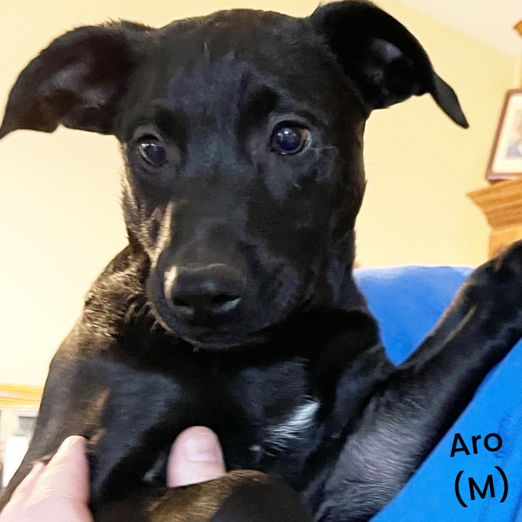 Aro is a happy, loving little boy. He is playful, active and gets along well with his siblings. Aro is neutered, current on vaccines and microchipped. A fenced yard is necessary to adopt Aro, (No underground fences.). Submit applications at wetnosesanimalrescue.org