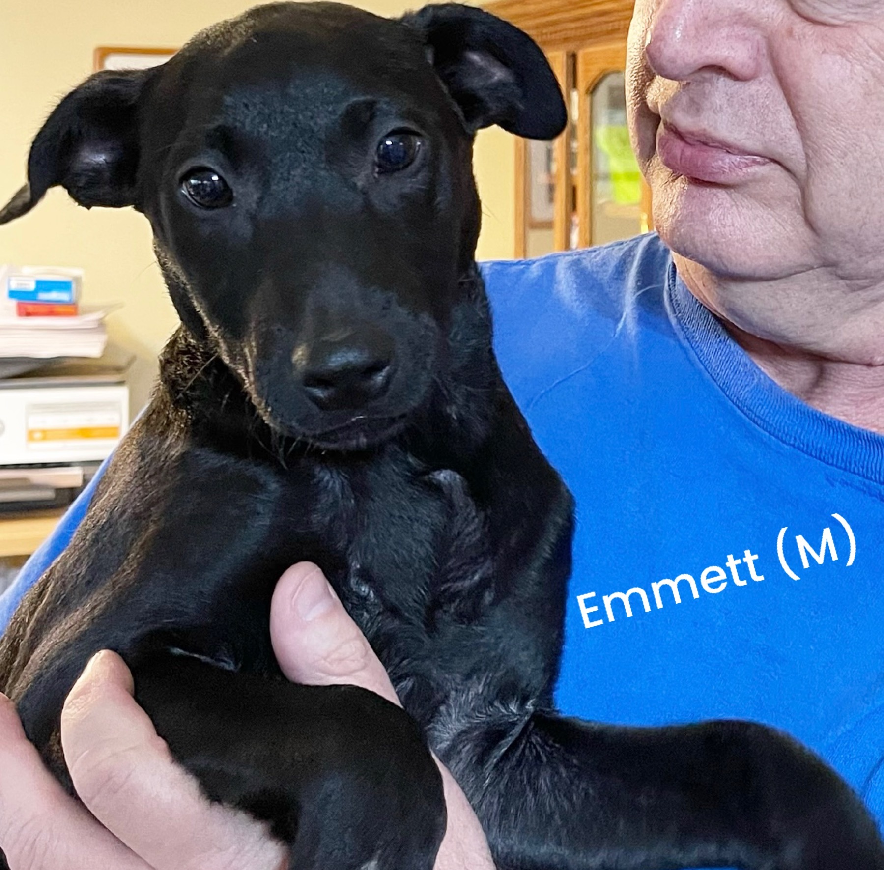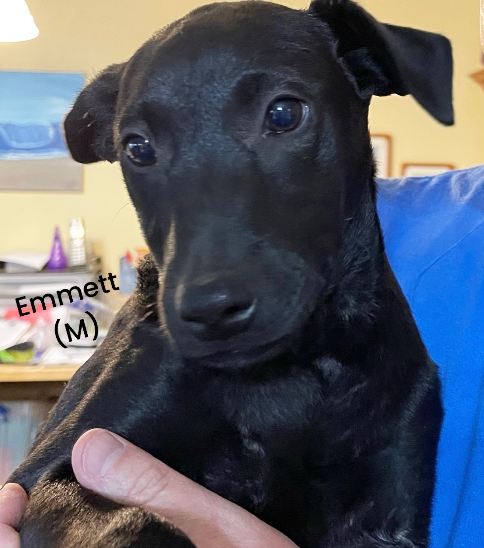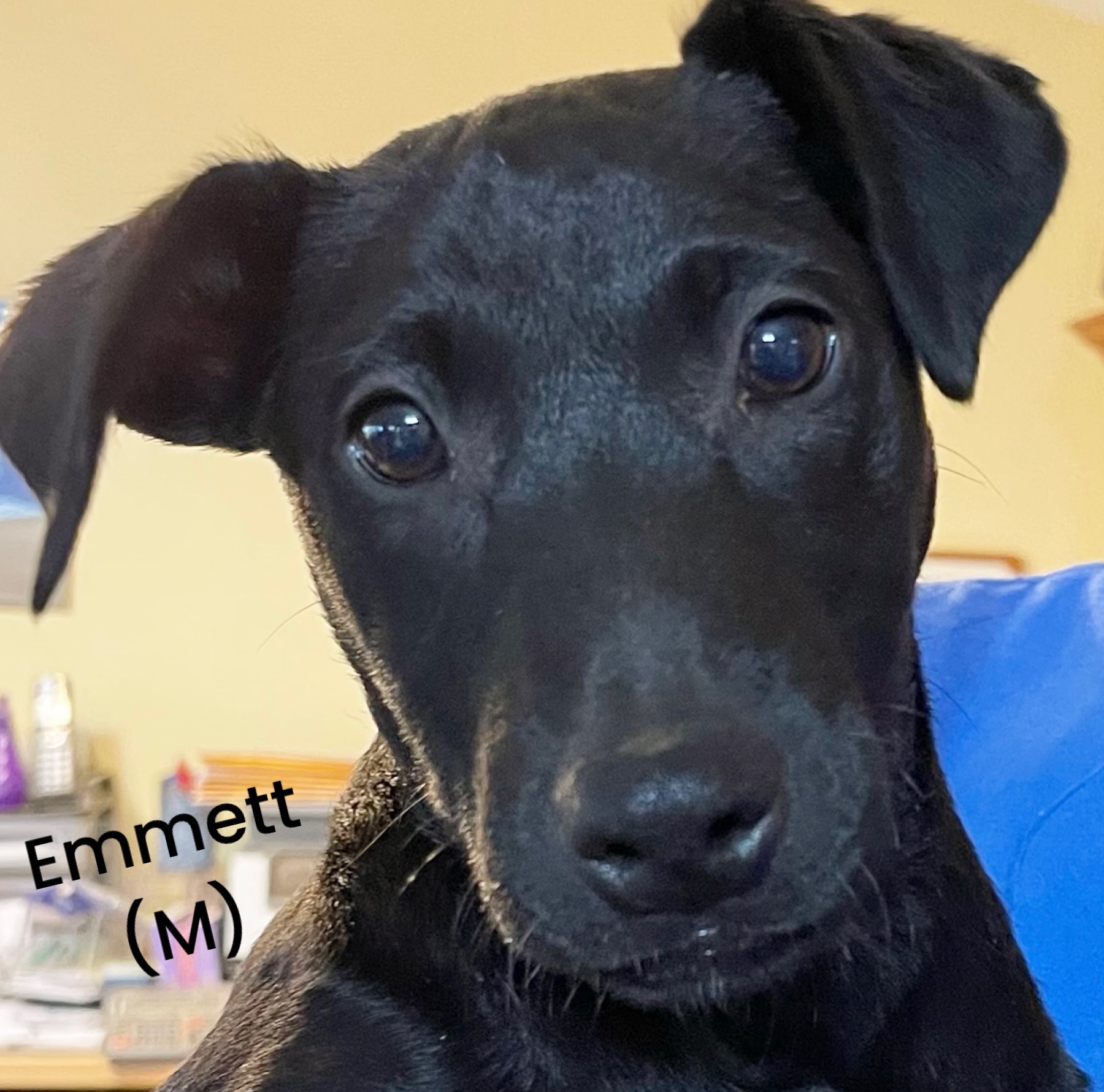 Emmett is a happy, loving little boy. He is playful, active and gets along well with his siblings. Emmett is neutered, current on vaccines and microchipped. A fenced yard is necessary to adopt Emmett. (No underground fences.). Submit applications at wetnosesanimalrescue.org