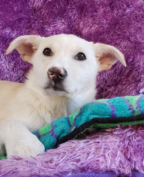 Good With Dogs: Yes Good With Cats: unknown Good With Kids: unknown Kennel Trained: Working on it Age: Approx. 3 Months Adoption Fee: $ 450 Fee Includes: Current vaccinations, microchip If you want to be considered for adoption, fill out an application at emotionalrescuedogs.org Leon is a special boy who is a bit frightened of the world. One thing that makes him feel better is the be held as if you were burping a baby so he can hug your neck and put his head on your shoulder. Leon is a white Shepherd and was born in early October. He is dog friendly and kennel trained. This boy is so loving! To meet him, apply at emotionalrescuedogs.org.