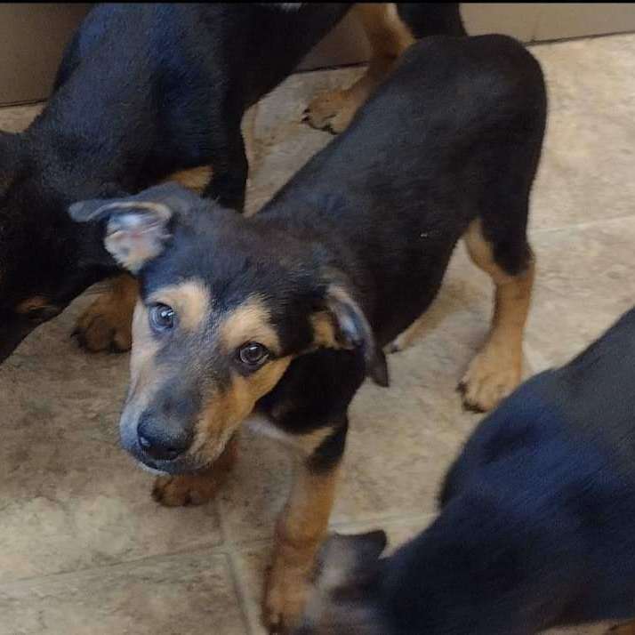 Meet Doger he is a 4 month old wire terrier mix and we believe dad was probably a Shepherd. Very sweet and playful. Just look at that adorable face!!!