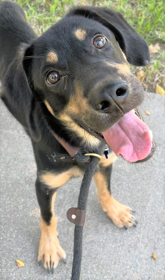 Wanna hear some more good stuff about me?  OK, here goes.  I like all people, adults and children, and other dogs.  You can call me Big Foot.  Im growing!  AND, can you believe it?  Ive already learned to use a doggie door!!!  Yay ME!  And, Im crate-trained, too.