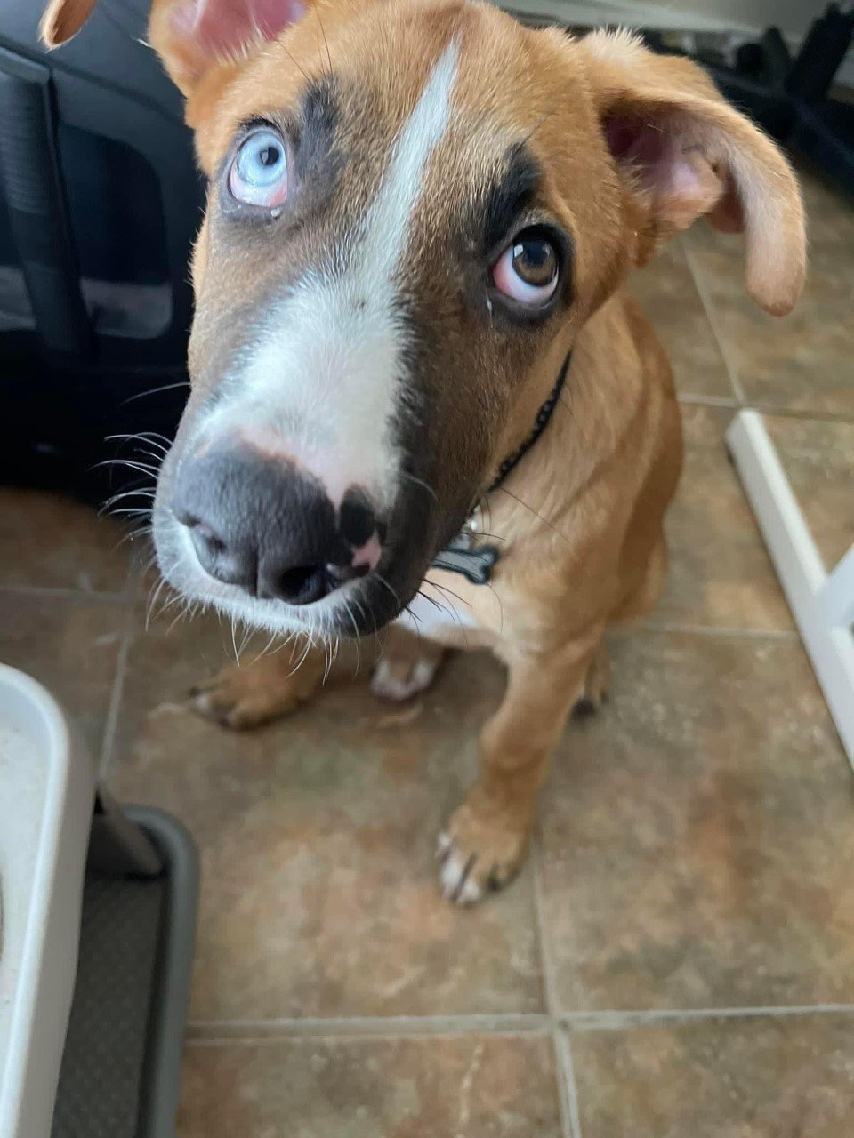 Hey yall! This is Charley! He is about 6 months old, unsure of breed still. He was found on the side of the road living under a car with no food or water. Ever since he was rescued, he has loved the indoor pup life! He enjoys playing with his foster brother. He also enjoys being outside when its cooler, digging holes, and playing in the water! He absolutely loves his crate and will go in with no problem as long as he sees a treat. He is potty trained, and is used to eating three times a day. While he does well with his foster brother, he has had some issues meeting other dogs so he will need a slow introduction if you have other pets. He is very playful and has learned his basic commands fairly easy. He is a people dog!! Loves meeting new people and he just recently learned how to walk up the stairs. Charley is available for adoption with Saving Grace Dog Rescue of San Antonio. The adoption fee is $195 local or $395 out of state with transport. An adoption application, home visit and adoption contract are all required. All dogs are spayed/neutered, up to date on vaccinations appropriate for their age, microchipped, and wormed for internal and external parasites. If you would like more information or an adoption application, please email us at sgdrsa@outlook.com. Please note that visual breed identification in rescue dogs is unreliable so for most of our dogs we are only GUESSING at predominant breed or breed mix. We get to know each dog as an individual and will do our best to describe each of our dogs based on personality, not by breed label.