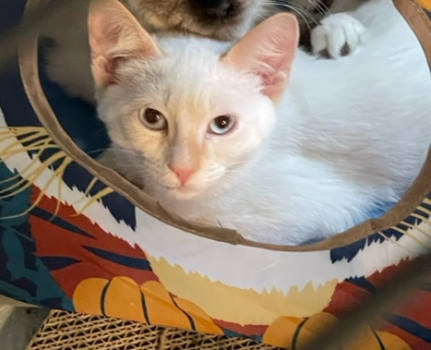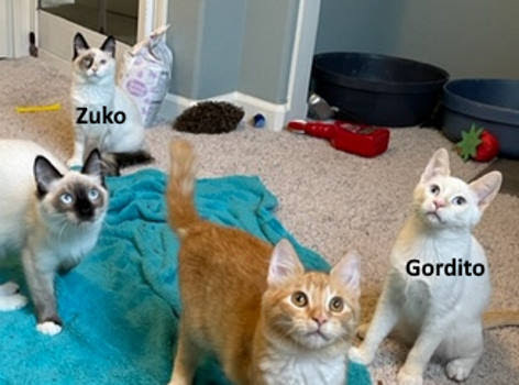 Gordito (Zuko): Born ~4/22/2022, M, Flame Point Siamese Mix Bonded pair. Must be adopted together. Fee $300 Total Adoption fee for both cats Fostered by Kathy in Reno, Nv. Contact Kathy at email: tazanovakat@purebredsplus.org . if you have additional questions. If you are interested in adopting this cat, please fill out an Adoption Application, which can be found at https://purebredsplus.org . My name is Gordito. Why? Because when I was a little kitten, I would take treats from my siblings mouths. I dont do that anymore; promise! I am a handsome boy and my favorite thing is hanging out with my sister Zuko! You can usually find us cuddling and just handing out together. I like to think of myself as a classic "kitty" with medium energy that loves to be near you. I like to play a lot…do you? Im a big sucker for under-the-chin scritches. I RECENTLY decided I am a big cuddler and am happiest sitting on you and I will knead and knead and knead I just love the attention! I also follow my foster Mom everywhere so she can give me a bunch of attention! I would love to be in a home with Zuko she is my sister and I look out for her! I would be perfect for homebodies that like to play and want to spend time with me. My foster mom says I am neutered, vaccinated, FELV tested, dewormed, microchipped, eats wet and dry food, and is litterbox perfect. They say thats good! My foster mom says I am neutered, vaccinated, FELV tested, dewormed, microchipped, eats wet and dry food, and is litterbox perfect. They say thats good! Purebreds Plus Cat Rescue is dedicated to matching exceptional cats (like me) with qualified adopters who will cherish me and create an ideal forever home. Purebreds Plus Cat Rescue (www.purebredsplus.org), serving Northern California, San Francisco Bay Area, and Northern Nevada, is dedicated to the rescue, rehabilitation, and rehoming of purebred cats, kittens, and other exceptional felines. We are a 501 (c)3 non profit rescue group. Most of our beautiful felines come from Northern California Animal Shelters. One of our goals is to keep purebred cats from ever ending up in a shelter. We are happy to help you if you need to rehome your purebred cat. Often, we can offer advice if your cat is having behavioral problems, and you may end up keeping the cat. We do NOT ship cats. We will place cats out of area but you must arrange to come and meet your new friend in person.