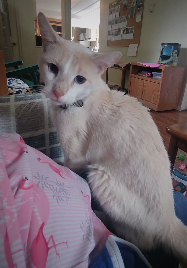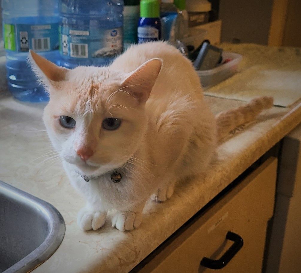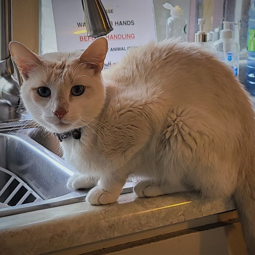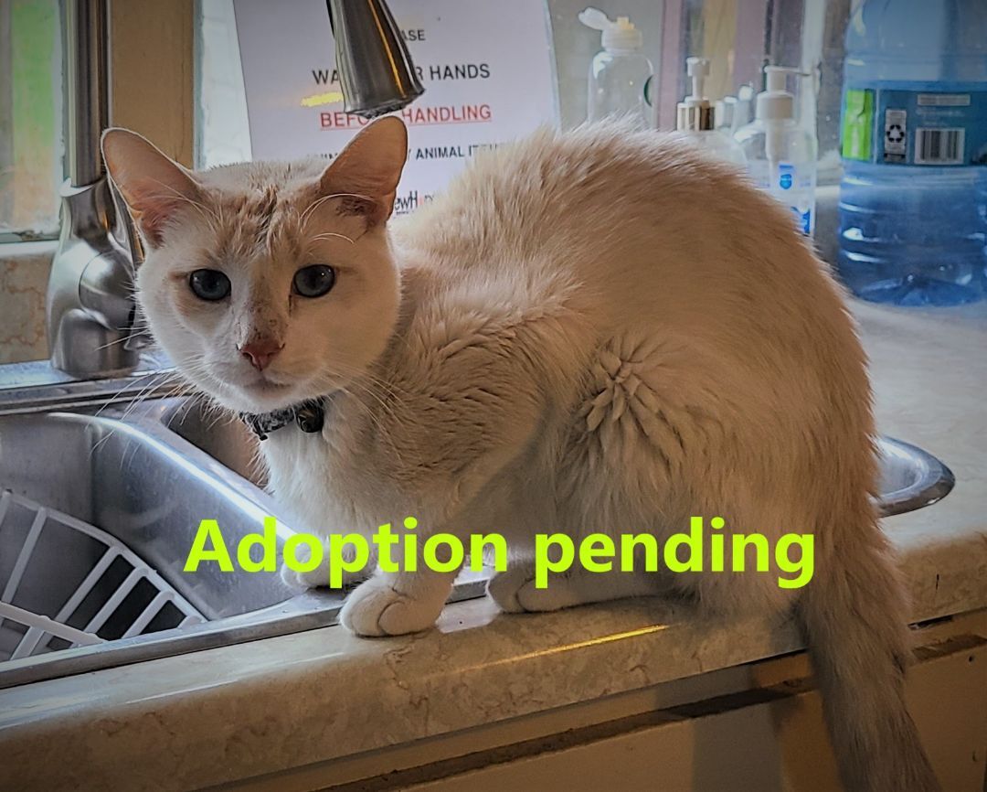 Turnip is a beautiful Flame Point Siamese who is about 4 years old and was an owner surrender. He is a sweet and loving boy who always wants to be on you and in your face to seek attention and see what you are doing! He loves to put his head under the tap to drink water from it and doesnt mind at all getting wet in the process; he is quite funny. He was very skinny when he came in but is a good eater and has already gained weight; hopefully his new family will help him gain a few more pounds. Turnip gets along well with other cats and avoids confrontation. We do not think he has ever been around dogs and children; older respectful children should be fine. Turnip is neutered, vaccinated and microchipped. His adoption fee is $200. Contact us at 519-836-9780 (Monday-Friday 8am-4pm only) or by email at newhopeanimalrescueguelph@hotmail.com if you want to be this gorgeous boys forever family!