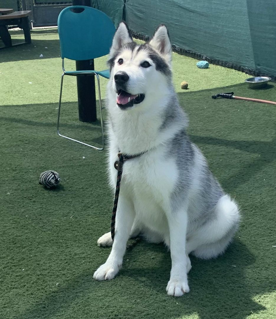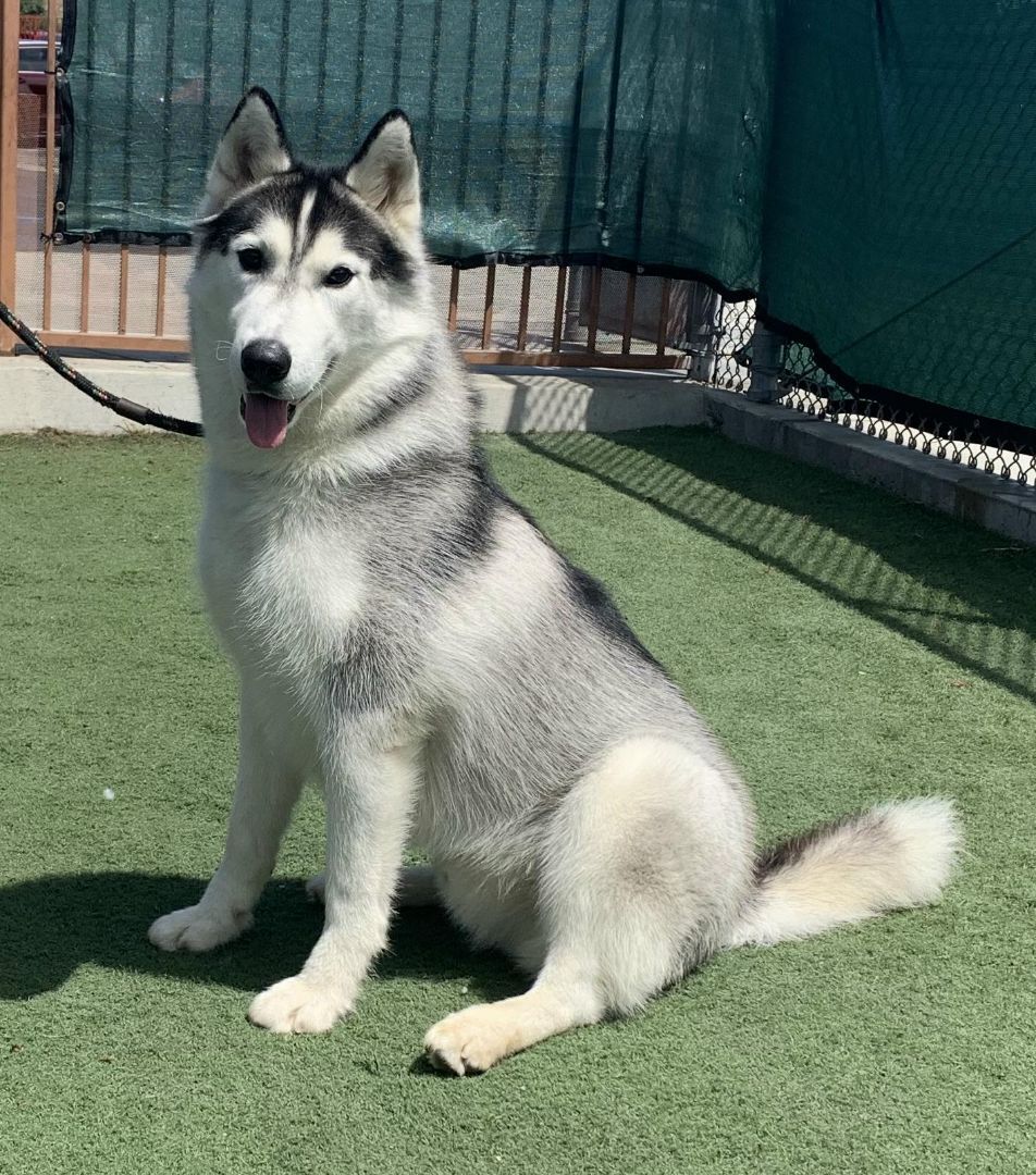 PLEASE NOTE: This is a Courtesy Listing so ARRF does not know this dog. Contact information is at the end of Mookies listing. Introducing Mookie, a huskys husky! Gorgeous Mookie is one smart boy and takes his training seriously (like all good huskies should!). He is eager to please and listens to his handler. During his many months at the shelter, he quickly learned basic commands (sit, stay, paw) and is now working on more advanced commands like jump (over the obstacle course hurdles), ramp (up and down the obstacle course ramp), and heel (next to his handler, sometimes without a leash if the handler uses hand signs!). This athletic boy has lots of energy, and when hes not working the obstacle course, he loves running, chasing toys, and swimming in the shelter kiddie pool. Besides athletic training, Mookie is working on his manners; repetition and treats are helping him to make good progress. Despite spending lots of time in his shelter kennel, Mookie tries to stay calm while kenneled. He can be very affectionate and is happy to hug and cuddle with humans he knows when he is out of his kennel. He would love to go to a home with experienced owners who able to provide him with lots of exercise and with mental stimulation (games, puzzles) to be the best boy that he can be. You can meet Mookie at the San Diego County Animal Shelter, 2481 Palomar Airport Road, Carlsbad, CA 92011. The shelter is open to view animals from 1-4 pm Tuesdays – Fridays, and 10 am-4 pm Saturdays and Sundays, and by appointment by calling 619- 767-2675. Be sure to mention Mookies ID number, which is A1892271.