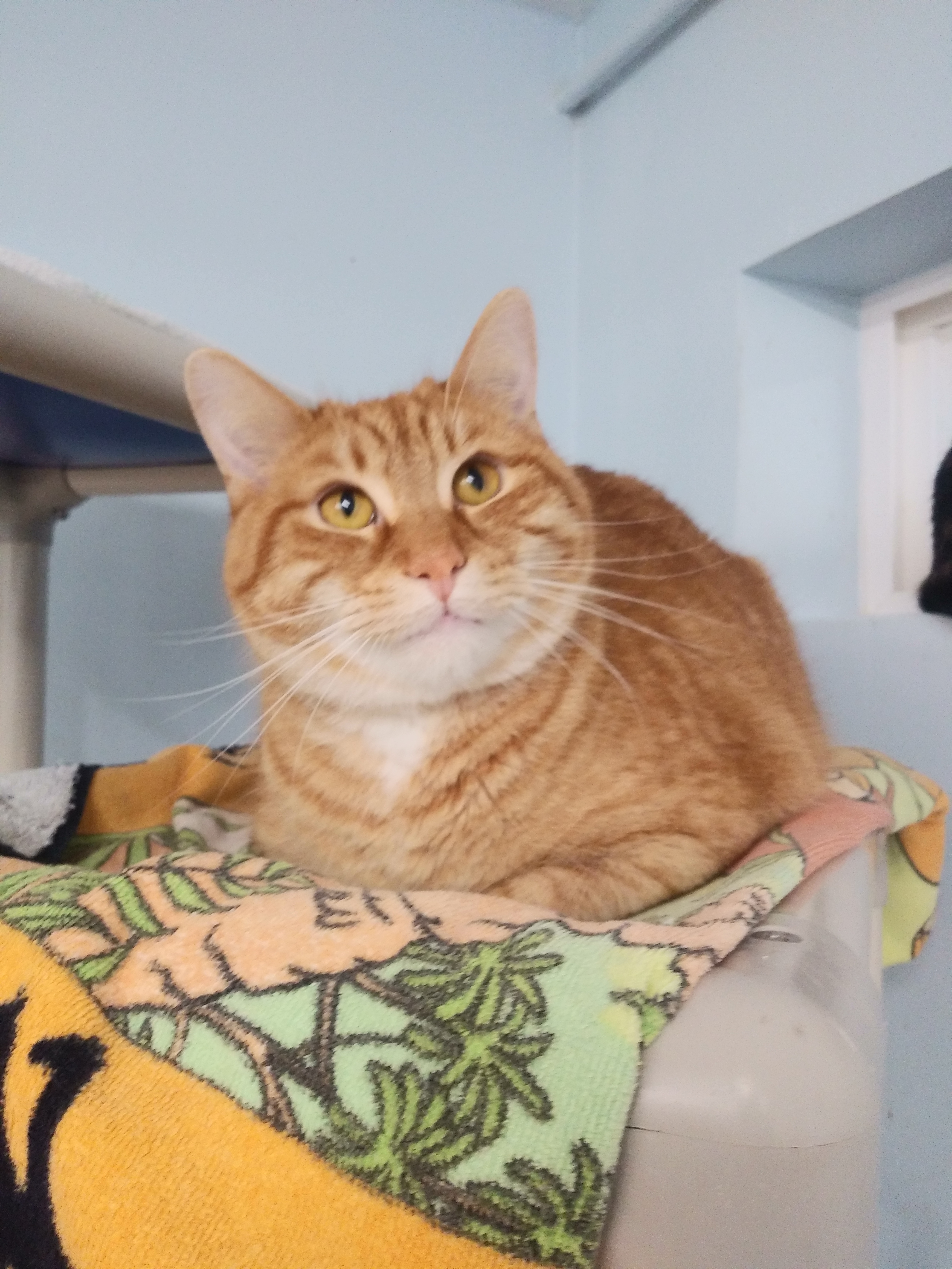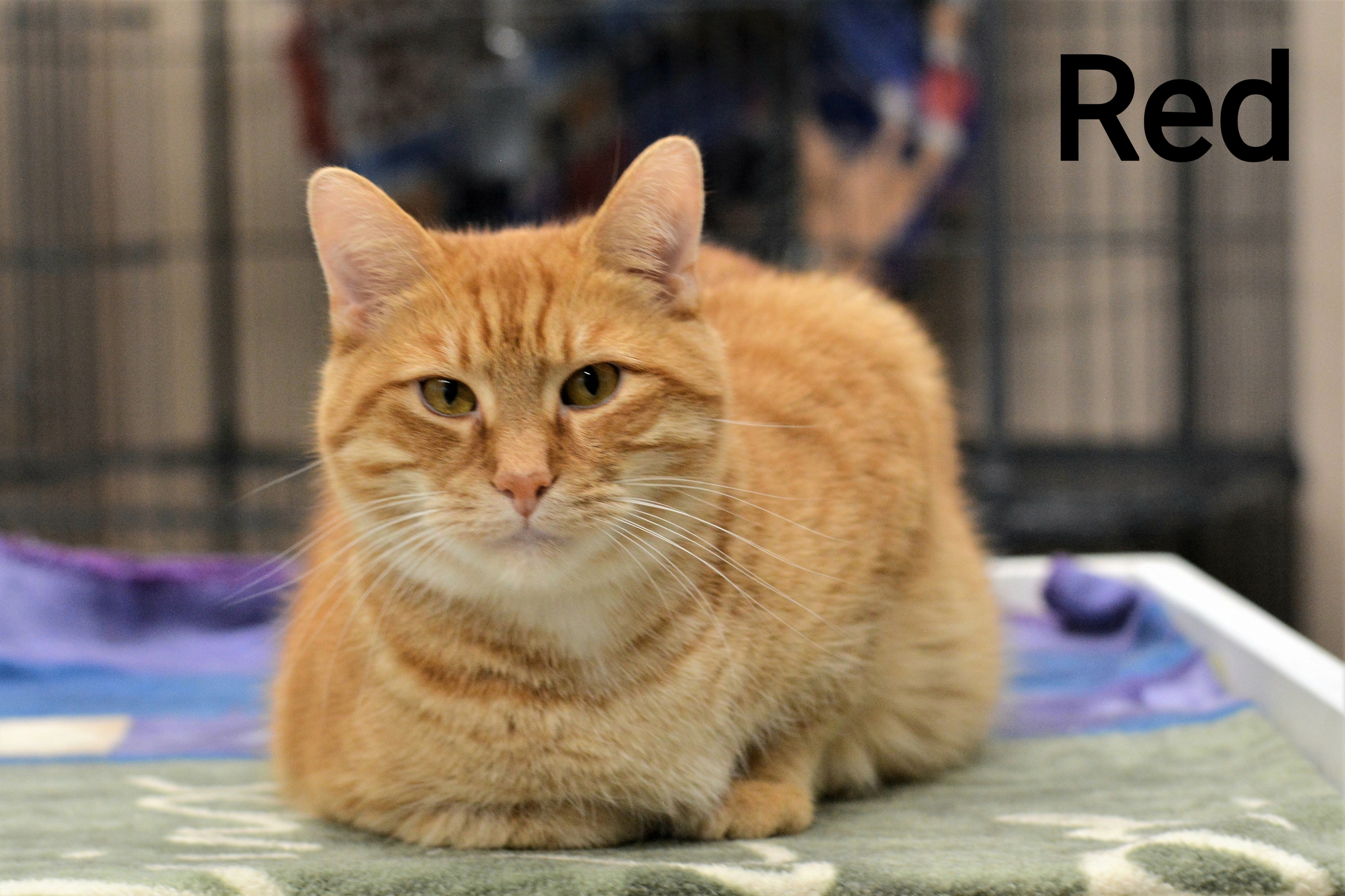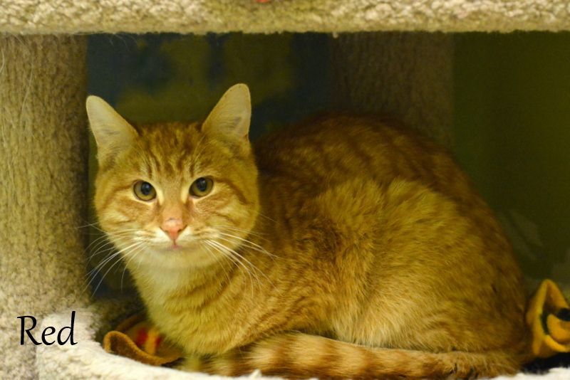 Red is an orange tabby male. He was brought to us as a stray. Red is friendly but shy. He really needs a nice quiet home in order to blossom into his true sweet self.