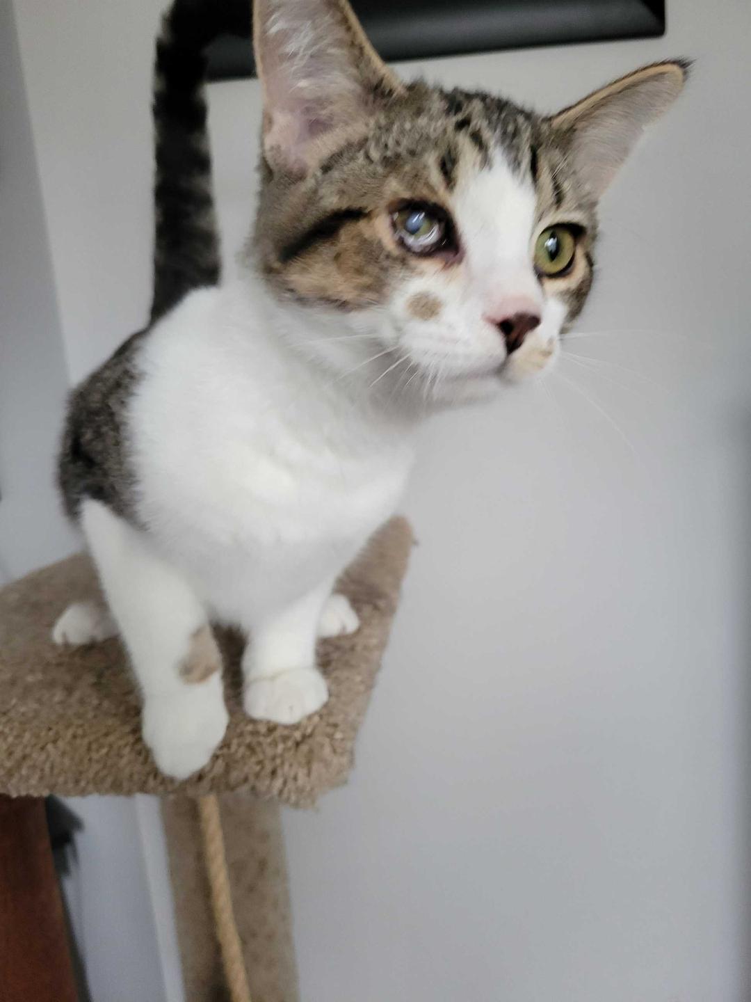 Update August 4th, 2022 - Cooper & Bodhi are now up for adoption . Please take the time and read Cooper s information including the requirements. Then fill out the online adoption application form at avacats.org an adoption co ordinator will be in touch within 48 hours. September 2021 - Cooper and his littermates Bodhi, Tad(adopted) & Dash(adopted) were found in barn at about 6 weeks old with very bad eye infections and URI. Their pregnant mom had been dumped there and gave birth. They were taken to a foster home, put on antibiotics and eye meds. Their mom has been trapped, fixed through the TNR programme and back living on the farm. Fast forward 6 weeks later and they are ready to find homes. Cooper has been flea treated, dewormed twice, received 2 sets of FVCRP vaccines plus rabies, neutered and microchipped. Cooper is a very sweet, loving , playful kitten. Cooper had a corneal ulcer which has healed up nicely. His 3rd eyelid is adhered to his right lower eye lid - born this way, but it doesnt bother him and has been left alone. His eyes still water a little and may always do so. They did go to an eye specialist in Oakville who said they have the herpes vaccine and it will flair up from time to time but just wipe the eye and may have to have eye drops. He is very bonded to Bodhi so we are adopting them as a pair . His adoption fee is $200 Two is better than one, twice the fun and 1./2 the work. AVA has an indoor and no declaw policy. . During this pandemic we are still conducting adoptions, but in ways that protect the health and safety of all those involved and maintaining physical distancing. If you are interested, we ask that you fill out an online application form at avacats.org/adopt/adoption-form. Please choose the location that says Pet Valu, Global, foster homes Hamilton, Ancaster, Burlington. Once we receive the application, you will receive a phone call for a telephone interview. Once you are approved for adoption, the adoption fee is e-transfer only. Arrangements are made to meet at the foster home