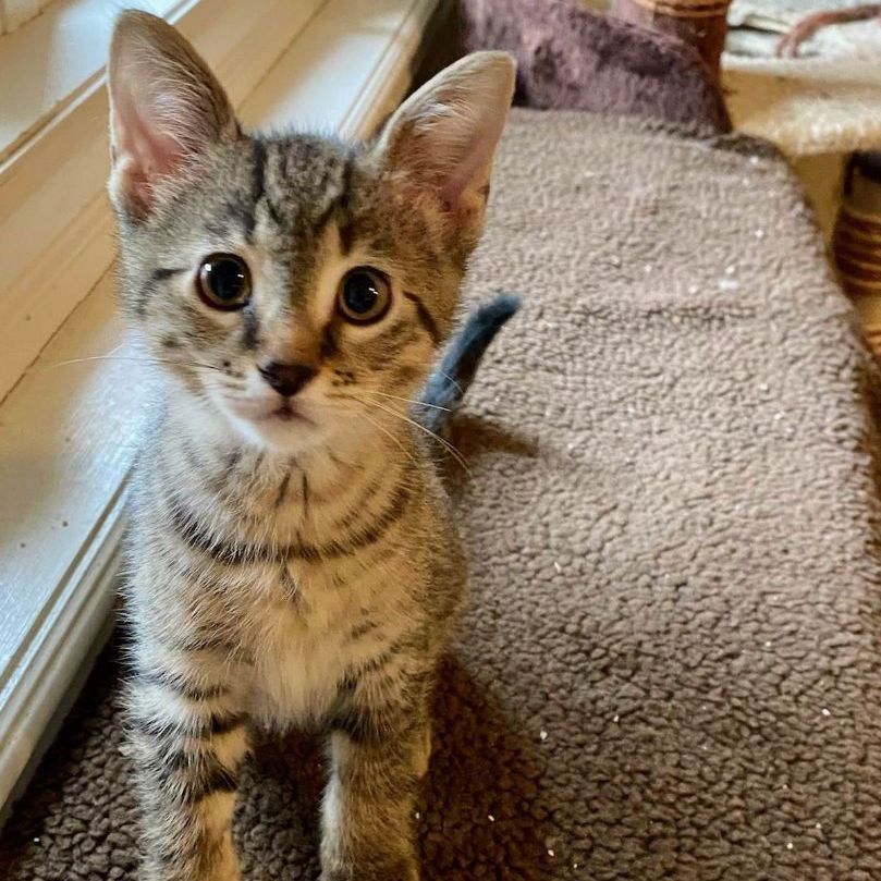 The Professor (Roy) is part of the Gilligan’s Island kitties. He was born on 12 July 2022 – he was born inside, but his mom is feral. Roy is a sweet and gentle little guy. He is a bit more nervous than his siblings, and it took him a bit longer to come around to trust people, but now enjoys belly rubs, and erupts in purrs when he’s touched. He is a very polite boy who sits beside his fosters and looks at them hopefully, waiting for an invitation before coming in for pets. We have not seen Roy with dogs or children. He would love to be adopted with one of his siblings – especially Minnow, who he’s been best buddies with since day 1. NOTE 1: Spays, neuters, first vaccinations and vet checks are included in the adoption fee. NOTE 2: Because a young kitten needs feline companionship, it is the policy of Cat Rescue Network that kittens 6 months or younger be adopted out in pairs unless there is another kitten or young cat already in the home. NOTE 3: Cat Rescue Network only adopts their cats to homes in the National Capital region of Canada