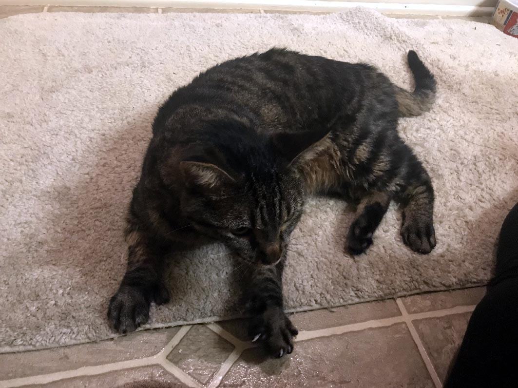 Meet Sammy! Hes a 3 yr male brown/black Tabby with a fluff of orange on his belly. Sammy finds himself needing a new home because his person is moving out of country and he cannot go with him. He will be your next best buddy and bring smiles to your face every day. Sammy needs a quiet home, has not been around other cats or dogs. Foster mom notes: Sammy was very reclusive when he was in the shelter so I brought him home to foster. It took him several days to acclimate with a completely new environment. He really wants love and attention (and of course, he gets it). Lots of chin and ear rubs, and does roll-overs for belly rubs. And check out those paws with the cute little beans! Contact foster mom brinker.lori@gmail.com, 913 449 1560 for more information and to schedule a meet & greet.