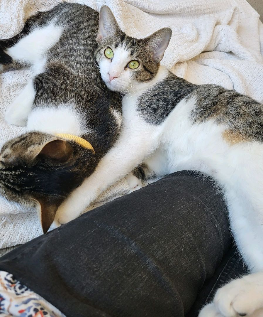Date of Birth: 3/18/21 Eduardo and his brother, Rodrigo, were rescued from living a life on the streets. They are the sweetest boys who love attention, pets, and playtime. They are very bonded and it would be great if they could be adopted together, but not absolutely mandatory. If youre looking for a pair of young cats to share your life with, these two might just be the ones! If you are interested in adopting from Cat Posse, please visit our website, www.catposse.org and fill out our application. You can also contact Sharon at sebastian_sophie@yahoo.com to have an application either e-mailed or faxed to you.