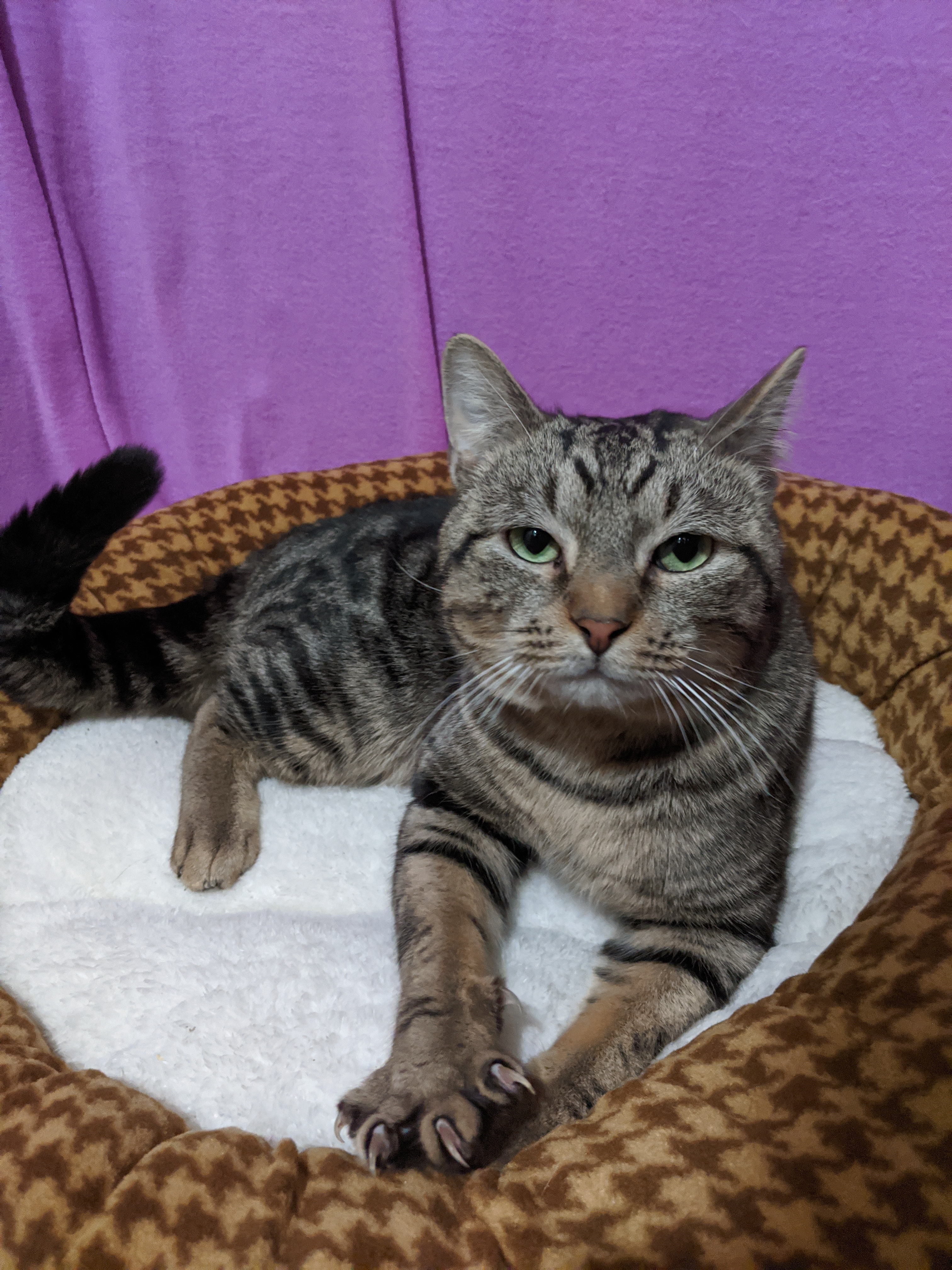 DOB: 5-22-2020 Finn is a sweet boy with a big heart. He was found as a stray and made his way to us before the cold set in. He can be timid at first but is a lovey boy once he gets comfortable with his human. He does need a very patient and understanding home as he settles in. Finn can be quite vocal at times - mainly as he settles into his new home. He is also quick to let you know when he wants food and attention. He LOVES to be held and will snuggle up to your neck to get as close as possible. He will follow you everywhere and wants to be involved in anything that you do. He is good with other cats and would do well with a younger, playful fur-buddy in his new home. He may get too lonely (and cry) if he is by himself in the home without a buddy. He has been known to yowl when he is scared in a new situation. His new home will need to be understanding and patient as he settles in. Because of his personality, he would do best in a quiet home with NO children. Due to his energy level, he will also do best in a house setting. Apartments and condos are not ideal. Finn has been neutered, vaccinated, tested for FeLV/FIV/HW (negative) and microchipped. His adoption fee is $200+tax. Please email us for an application if you are interested in this handsome boy!