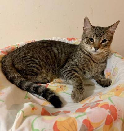 Hi there! My name is Hunter, and I am a sweet boy hoping to find a home to love me! I am playful and fun, but also affectionate and sweet. I love to explore the house, and practice running and cat tree climbing! I have the usual amount of kitten energy am willing to use it! I do have a little sass once in a while! I would do better in a home with another younger kitty, as it would help with companionship and also help use up my kitty energy. The rescue will be looking for a home with a buddy for me. I am here with my sister Hana. I am a domestic short hair male brown tabby and white, already spayed with all my shots. I am 9 months old as of the beginning of June. Adoption Fee: $125 Local Adoptions Only