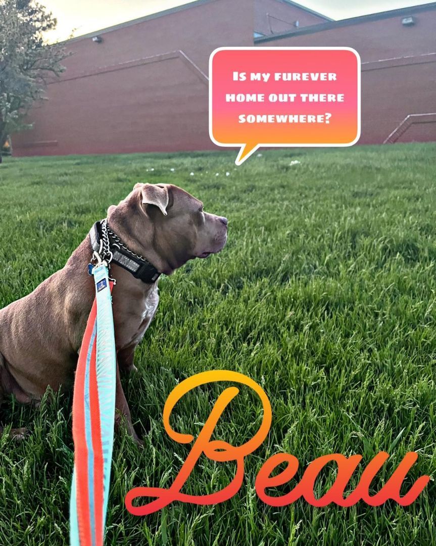 We have learned that Beau is very protective of the people he loves. Saying he is a volunteer favorite is an understatement. He greets most volunteers with big wet kisses and tries to crawl into our laps. He thinks he is a much smaller dog. He will take some time to trust you but when he does, he will be your guardian. He is strong but walks very well. He would do best in a house with a fenced yard, no other pets or children. He requires a home visit.