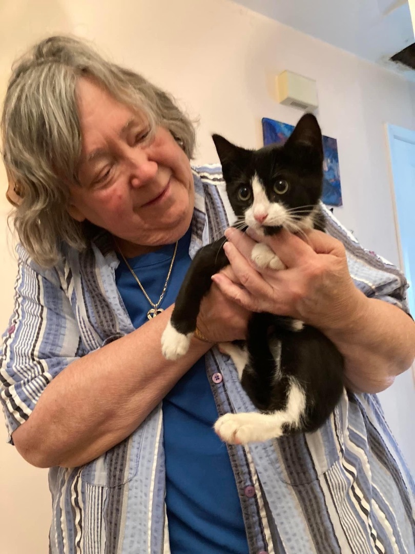Little Boots is about 3 months old, and has really become such a love bug. As you can see, he was found living on the streets. We were able to find him a loving foster home, and he is so happy to be indoors and living the good life now! He is good with other kitties, and although he was scared at first he’s now really come out of his shell and is loving attention and all the indoor amenities. If interested in adopting Little Boots, you can fill out an application here: https://form.jotform.us/71090684088159
