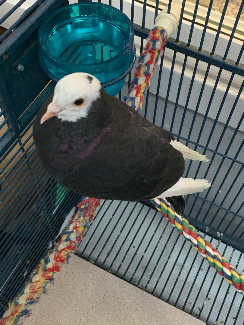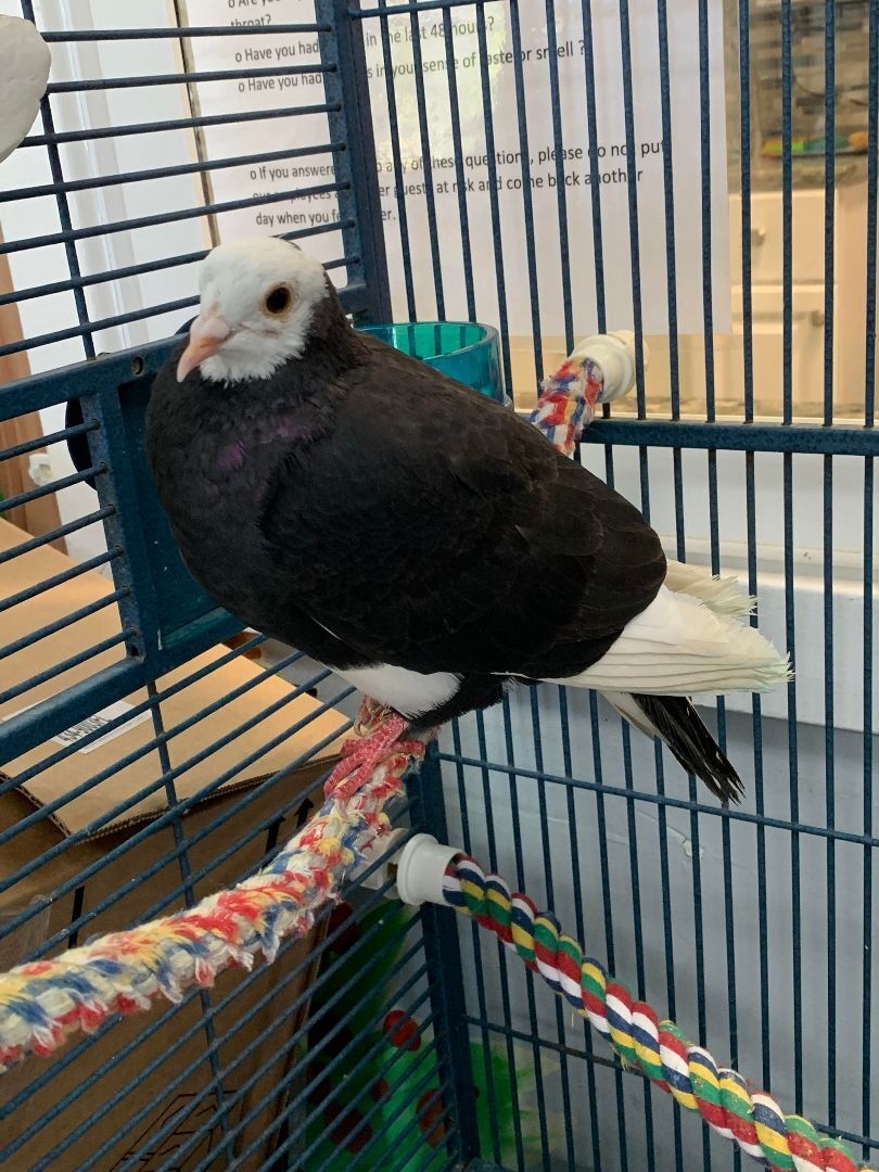 Calypso is our new addition, he is a fancy pigeon. He came to us as a stray and has made himself right at home. He is very quiet and loves to people watch. Occasionally he will flap his wings to get your attention. If you are interested in meeting Calypso please email SmallAnimal@ManchesterAnimalShelter.Org