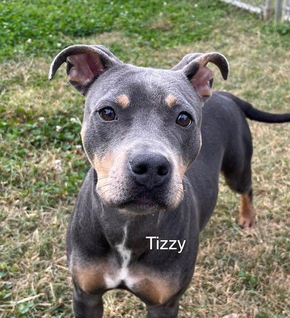 Tizzy is the newly crowned queen of the zoomies! This pre-owned dynamite wiggle butt loves to run & play. She is always happy to see humans, happy to go outside & really happy to get some loving. She is full of life & play & eager to make friends. She is a 2 yr old American Staffordshire terrier mix who weighs 32 lbs. & is heartworm negative.