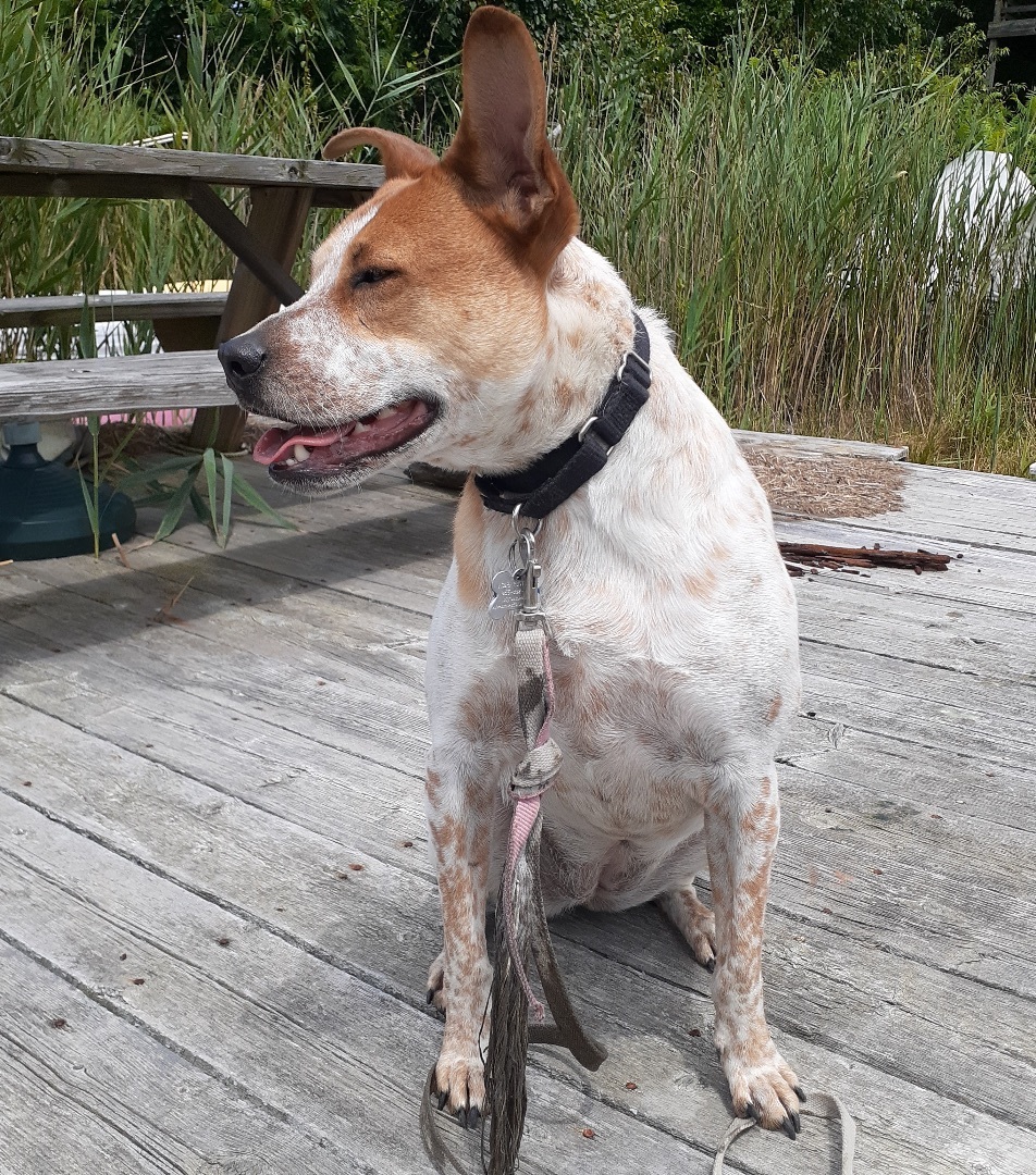 Ginger will be 2 in November, about 35 lbs, spayed, micro chipped, up to date on age appropriate vaccinations, and is on monthly heartworm/flea tick prevention. She has been with me for a bit over a year and its beyond time for her to find her family. Ginger is from GA where she was found on the side of the road with her sister (Snap) and Momma (Cookie). She was fostered with her sister who has been adopted. Ginger is wondering where her family is??? She wants to sleep in the big bed with her humans just like her sister does. Gingers wish list......a home with a yard to run and explore. A quiet area without a lot of noise or traffic (shes a country girl). A family who is home more than not. A family with patience, and time to continue her training and introduce her slowly to new things. Maybe a furry brother or sister to play with. She is very gentle and cautious with children. Ginger would not do well in a busy appartment environment (she can be vocal) or crated long hrs daily. She has no fear of thunder or the weekend fireworks. Ginger would be a great hiking buddy. Ginger is housebroken but has an issue with submissive peeing, it only seems to happen with my Grandson when he first comes in the door and then she is fine. Her crate is a safe place when new people are visiting. Its best to slowly introduce new people outside where she can take her time sniffing and meeting them. We work on sit, paw and down, she is so smart and does well on leash, though easily distracted by all the sniffs and new experiences. She does very well riding in the car, and is very easy to vet, they all love her. Ginger is still just a big pup who loves to play with her Foster siblings. Ginger is just the sweetest girl, who loves to show off her pearly white teeth, her underbite makes her so uniquely adorable. Ginger cant help it, her teeth are always showing. Ginger is just a very happy little dog, her tail is always wagging. She loves everyone, gets along very well with my young Grandsons when they arent bouncing around the house, shell just find a quiet place until they sit, then she will come in for sniffs, love and kisses. Ginger is very submissive to other dogs, she will just lay down waiting, wanting acceptance, shes a lover, not a fighter. Once the threat is gone and she feels safe she joins in the play. Ginger is 1 of 4 dogs in my home and they all get along wonderfully. She likes to stalk the chipmunks who taunt her from the other side of the fence, play with balls and squeaky toys. She is sleek and fast , loves to run laps with her partner in crime, Blair. They have a strong bond and are always together, either playing or laying on the couch. Ginger can be a bit vocal when she wants out of her crate, or its feeding time, she is a great watch dog, will let you know if someone she doesnt know is outside the fence. She sleeps all night in her crate with no issues, and is crated when I have to run errands, other than that she has free range with the others. When I get home from errands I am thoroughly examined from head to toe, she has to sniff me all over to see where Ive been. Ginger enjoys watching TV and loves to cuddle up with you on the couch. Some of her favorite things are shoes and socks and she seems to have a foot fetish so keep those socks on or shell give you a pedicure. Ginger loves the water and likes to chase the minnows around. One of her favorite things to do is just sniff, take it all in, nose in the air, wind blowing her ears and just sniff! Another favorite thing is to dig, she digs standing up, she digs lying down. and sometimes she digs sideways. Its so much fun ! If you would like to know more about Ginger please reach out to her Foster mom Shelleynugent@msn.com To see more photos and videos of Ginger please follow the link below https://www.facebook.com/dingodowneast/ Complete an Application: https://www.acdra.org/adoption-application