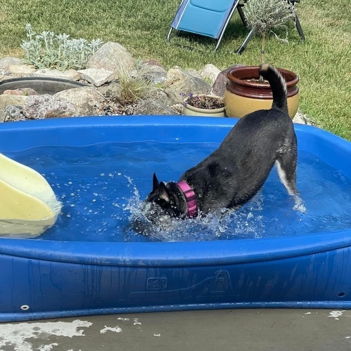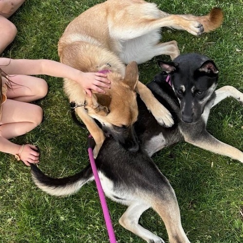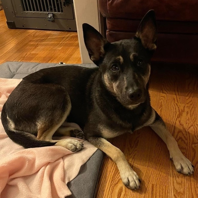 Please complete our required application that can be found on our website hwhanimalrescue.com This is Emily…Emmy for short. She is most likely a Cattle dog/ GSD, one years old, 40 lbs but NOT a huge dog and we think she’s full grown. She likes to chew and she sheds so a good hoof or a marrow bone does her well and she should be brushed often! She will required a fenced yard to run but knows how to relax indoors. ?She has been spayed and fully vetted and microchipped! She is absolutely sweet enough to be in any home from what we can see and she is a big cuddler! Emmy sleeps through the night in a kennel and crates well when her foster family leaves (does cry at first) and crates quietly next to foster mom all day while working remote. She loves water play outside She is potty trained. She does obey basic commands and is very smart. She has been around children and seniors, other dogs, and in public places. She is friendly and does not seem to be reactive whatsoever. She just wants to be loved.