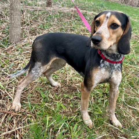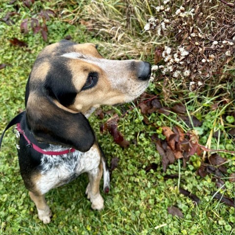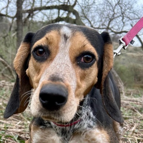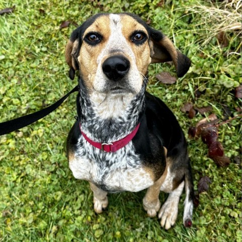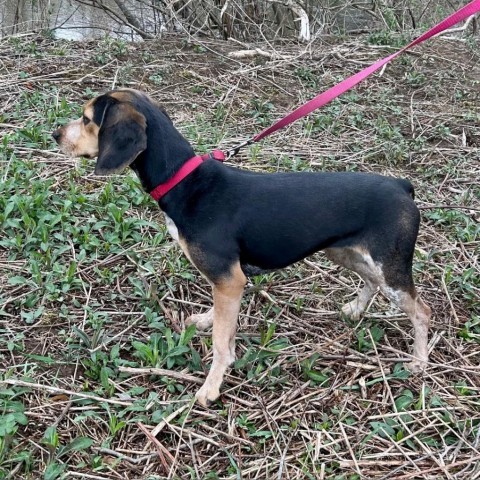 Luna is a very sweet, friendly and high energy girl! Shes a year old and likes lots of exercise. Enjoys going on walks with the volunteers. Likes to sniff and sniff and sniff. Very interested and excited by birds and animals that she sees outside. She is housebroken as long as shes not left for long periods without being able to go outside. Luna would be a great fit for a household with adults or teenage children. Shes not good with cats. Shes coming out of her shell since being here with us and is enjoying herself more and more!
