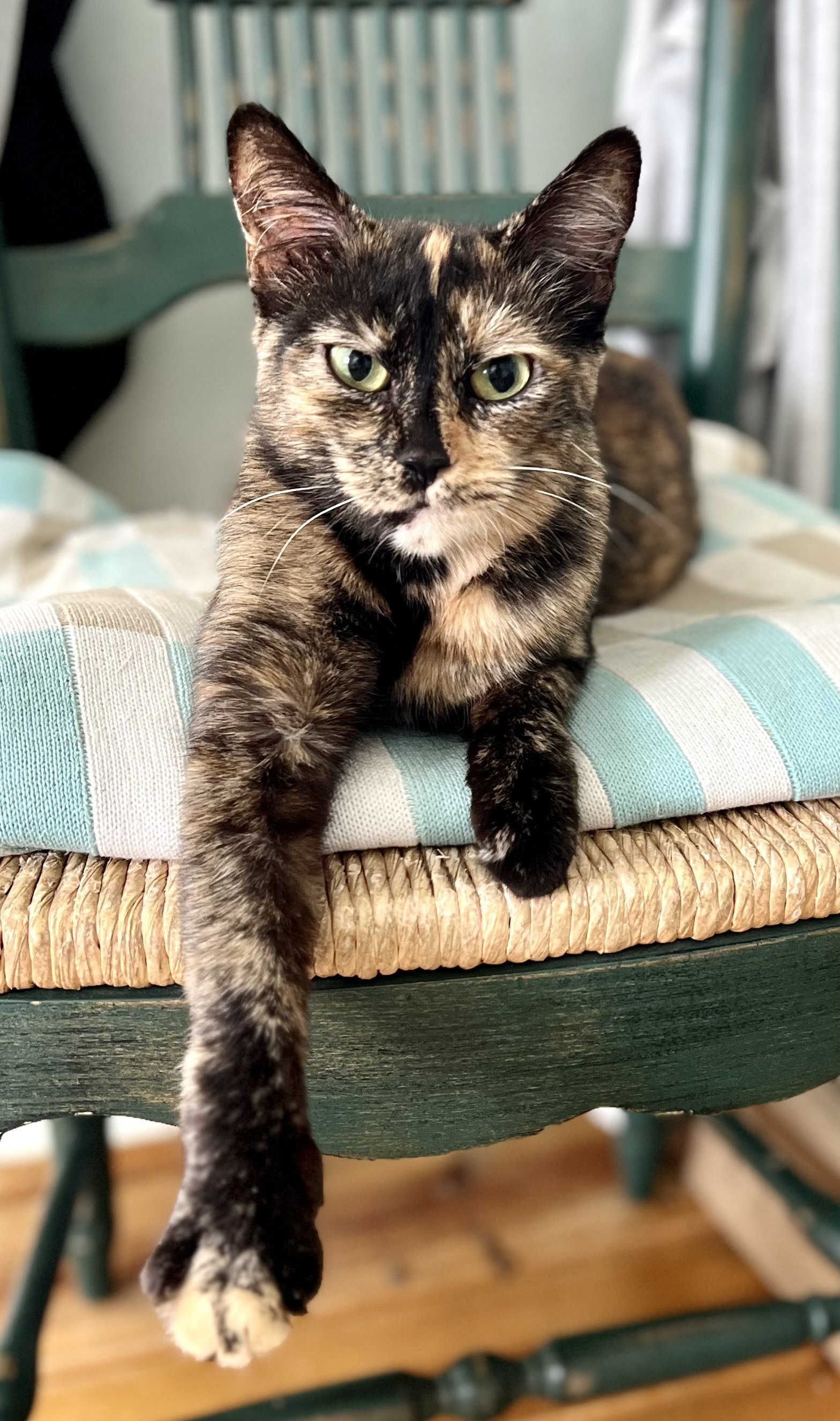 Beautiful golden Torti Penelope is ready to be done with the chores of motherhood to live the life of luxury that she deserves in a wonderful new home.She and her 4 babies were abandoned in a crate in an alley. But no matter what her situation, Penny continued to take exemplary care of them. And when a blind singleton orphaned kitten was brought to her, Penelope, lovingly took in that little baby and nursed her along with her own. All 5 babies are now weaned, Penelope is spayed, tested and has her vaccinations. She is sweet, kind and gentle and she gets along with other cats, but she would be fine as an only girl. She would be a wonderful addition to any family. Please consider opening your home and heart to this awesome kitty. If you might want to meet Penelope please contact us. We can send you an application to schedule an appt for you meet her. Send an email to: tmcsusan@aol.com with your email address or text (310) 251-4396 to request an adoption application. Adoption fee of $150 is requested to cover flea tx, worming, FVRCP vaccine, microchip and spay/neuter...plus medical record card.