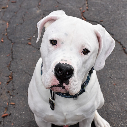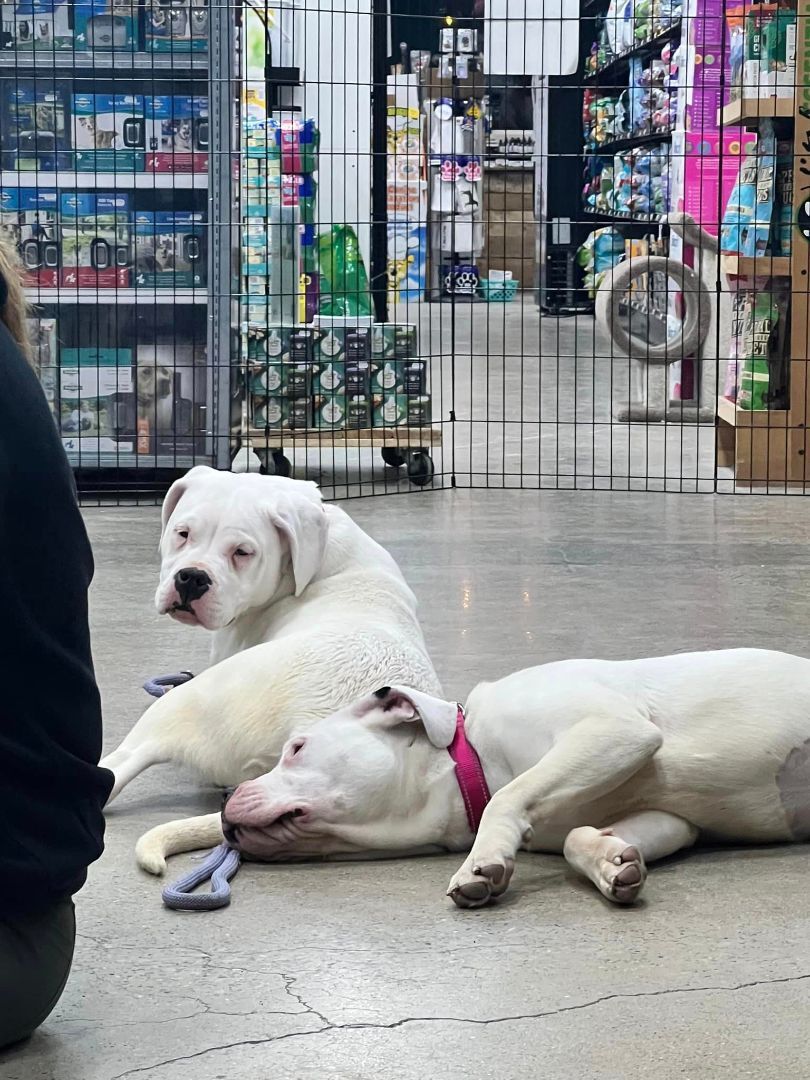 *This is an courtesy profile for 3(three) Dogo Aregentino puppies* You can apply at busterdogs.com The Buster Foundation is helping an acquittance find homes for 3 Dogo Argentino puppies. There are three beautiful girls who are healthy, socialized, and doing very well with training. These Dogos will be around 75 pounds when fully grown. We have Bonnie (black eye patch), Brava (all white), and Bella (black spot on her ear). Bonnie is deaf in her left ear but you wont be able to tell from interacting. These girls are all very sweet and are looking for their forever homes. You can apply at Busterdogs.com