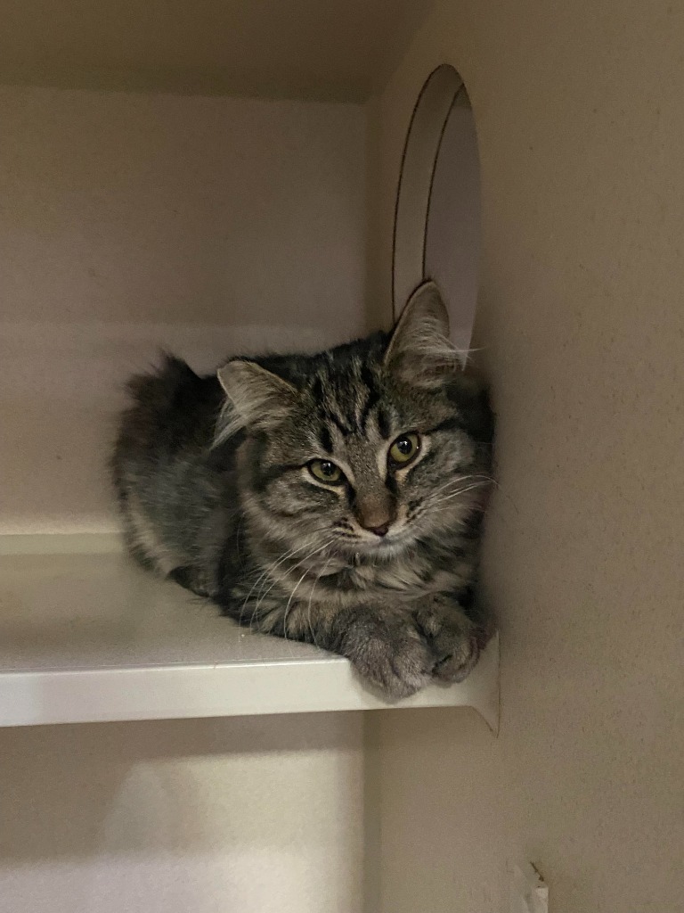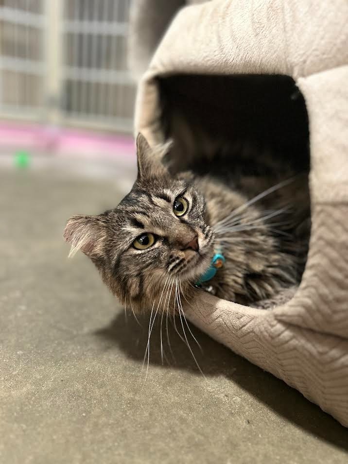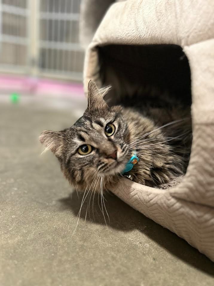 Sweet Jane came to us with her litter of 6 siblings! All were adopted but Jane was returned to us a year later due to her anxiety. Since being back at the sanctuary shes quickly come out of her shell and loves pets once shes acquainted with you. Jane enjoys sitting in her cave-bed when shes not wandering around and getting affection from staff. She would do best in a home thats quieter and can give her the patience to blossom into her best self. If youre interested in meeting Jane, you can fill out an application at: https://langefoundation.org/cat-adoption-application/ Email: st.bonnies@gmail.com Phone: 661-251-5590