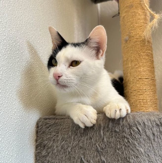 Hello friends! My name is Dottie and I am a domestic short haired, white and black, female cat. I was rescued by animal control with my newborn kittens. I had just given birth and since then have lovingly raised 4 healthy kittens. I am only 2 years old, and I am a very affectionate sweet girl. I love pets, cuddles, and lounging around. I have been at the shelter for 3 months now. My friends at the shelter say that I have been an amazing mom but now that my kittens are ready to be on their own, I am ready for my second chance at finding my fur-ever home. If I sound like a good match for you, please ask about me today! If you are interested in adopting Dottie, please submit an adoption application to animalcontrol@greenbeltmd.gov or call 301-474-6124 for more information. All adoptions are by appointments at this time. Please email your adoption application to our email. https://www.greenbeltmd.gov/government/departments/animal-control/animal-shelter/dog-adoption-form