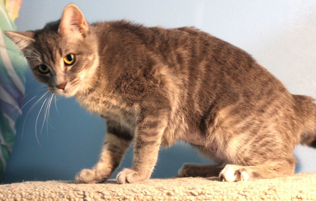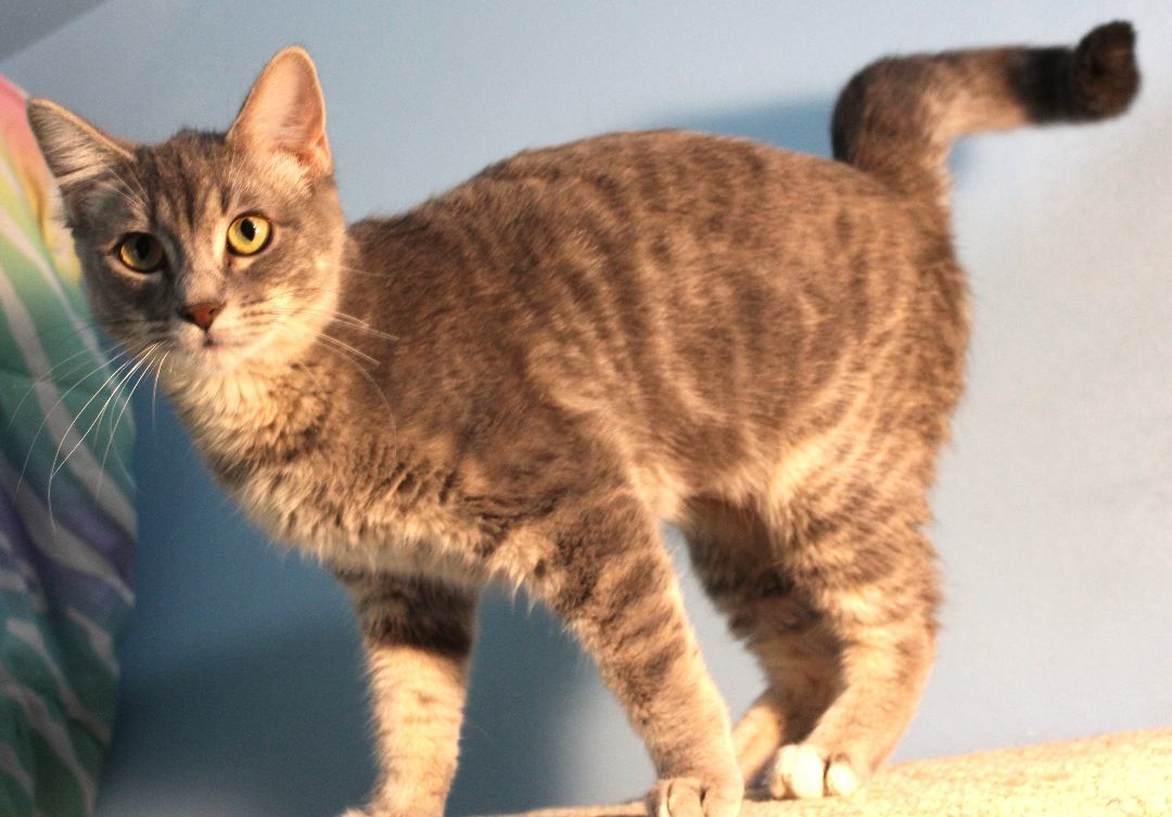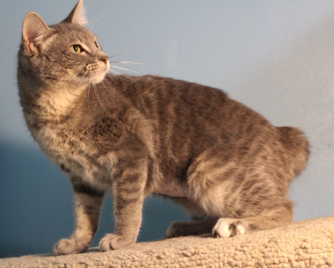 Highway was found as a stray in the middle of the highway. She is about 7-8 months old and a spayed female. Highway is very playful and good with other cats.