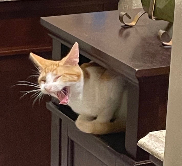 Beautiful peach-colored Ellie is a daughter of Fina, and she is sooo ready to fall in love with you! This petite young girl has always been smaller in size than her siblings, but never less energetic or mischievous than they are! She’s adorable, and she knows it: you can’t say “no” to those dramatic grey eyes and that cute little face! Ellie May loves spending quality time with her humans as much as she loves to play and sleep in a “kitten pile” with her siblings- Spock, Captain Kirk and Tiger Lily- born on 4/20/23. She is a cat who will quietly cozy up between your back and the back of the chair when you’re working on your laptop. She’s always ready for pets and for treats! She can be a bit shy with new people, but when she gives her beautiful pure heart to you, it’s yours forever! Ellie May would love a home where she can go with one (or more?) of her siblings, or with her aunt Gia if you dont already have a kitty companion. She is NOT a solo cat, and needs a feline friend. Sweet Ellie cant wait to cuddle with you! Interested in adopting? Please visit our website at www.thecatsmeowanimalrescue.org to fill out an application. One application covers all cats and kittens staying at our Petco locations, and those in individual foster homes. Questions? Email us at info@thecatsmeowanimalrescue.org or reach out on Instagram: @thecatsmeowanimalrescue