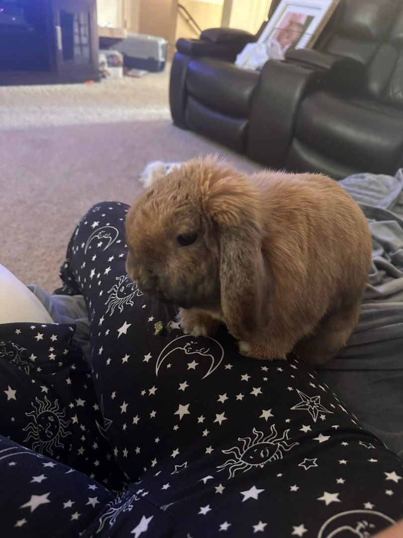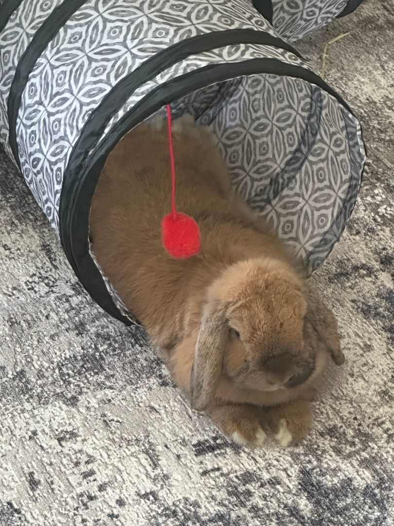 Maple is an absolutely precious bunny! She has a strong personality and is very outgoing once she gets to know you, which will lead to her jumping on your lap for treats. She is not a fan of being picked up, most bunnies are not, but will give you lots of pets when on the floor with her. She is very energetic and will need lots of free roam area to hop around and explore her domain. She is good with kids and dogs. She has been spayed, vaccinated against the Rabbit Hemorrhagic Virus, microchipped, and litter box trained. Maple is 3 years 10 months old, and 4.5 lbs. ball of fur and fun that requests a special family that will shower her with lots of love and attention, and of course treats.