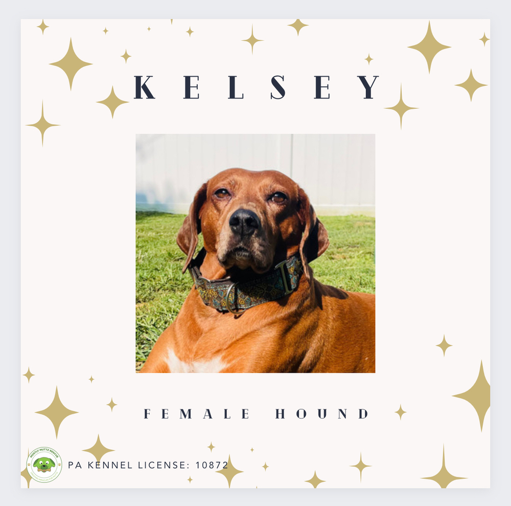 Weight: 50 pounds. Reported good with cats and kids 10+ Must have a physically fenced-in yard. Meet Kelsey! Kelsey came to Mostly Muttz after living outside on a farm with many other dogs for the first six years of her life. She was rescued along with her six puppies, who have since been adopted and are known to our rescue as the Irish Litter. Kelsey would love nothing more than to share your sofa in her forever home. While this girl is somewhat timid, she shows her personality once she knows she is loved. She prefers to spend the majority of her day indoors and is an all-around very easy girl. You may need to think for her at times. Kelsey does not need to be crated in the home while by herself and would prefer not to be. She does okay with other dogs but is really not interested in playing and we are looking for a forever home with minimal other pets or another very laid-back dog. She does prefer other female dogs to male dogs, but could live with a laid back male that would allow her, her space. She is not interested in the companionship of other dogs and a bit of a lone wolf in that regard. She is very food motivated and she absolutely loves to go for car rides. City life would be overwhelming for her and is not recommended. She walks nicely on a leash but prefers short walks rather than long walks. Kelsey was on live TV! Check out her debut at: https://www.wfmz.com/video/pet-of-the-month-mostly-mutz/video_8eb1870e-7816-56ee-a1d7-ae53e24379ff.html?fbclid=IwAR2u9s1TLUuU1jpetiT1gARPOp-SE9ZIhIJLEuVuYt37eTQnQZtGJp_KLr0_aem_Ad9cC7ghXNEEt72AnK4lIoWfMihzMxqfsnG8CUH1mHdJXZzkfDCvMSA15Gk7FpLvUHA#tncms-source=Homepage-Video-block If you would like to invite this gal, Kelsey into your life, please visit https://www.mostlymuttz.org/adoption-application/ to complete an application. Mostly Muttz Rescue PA Kennel License: 10872