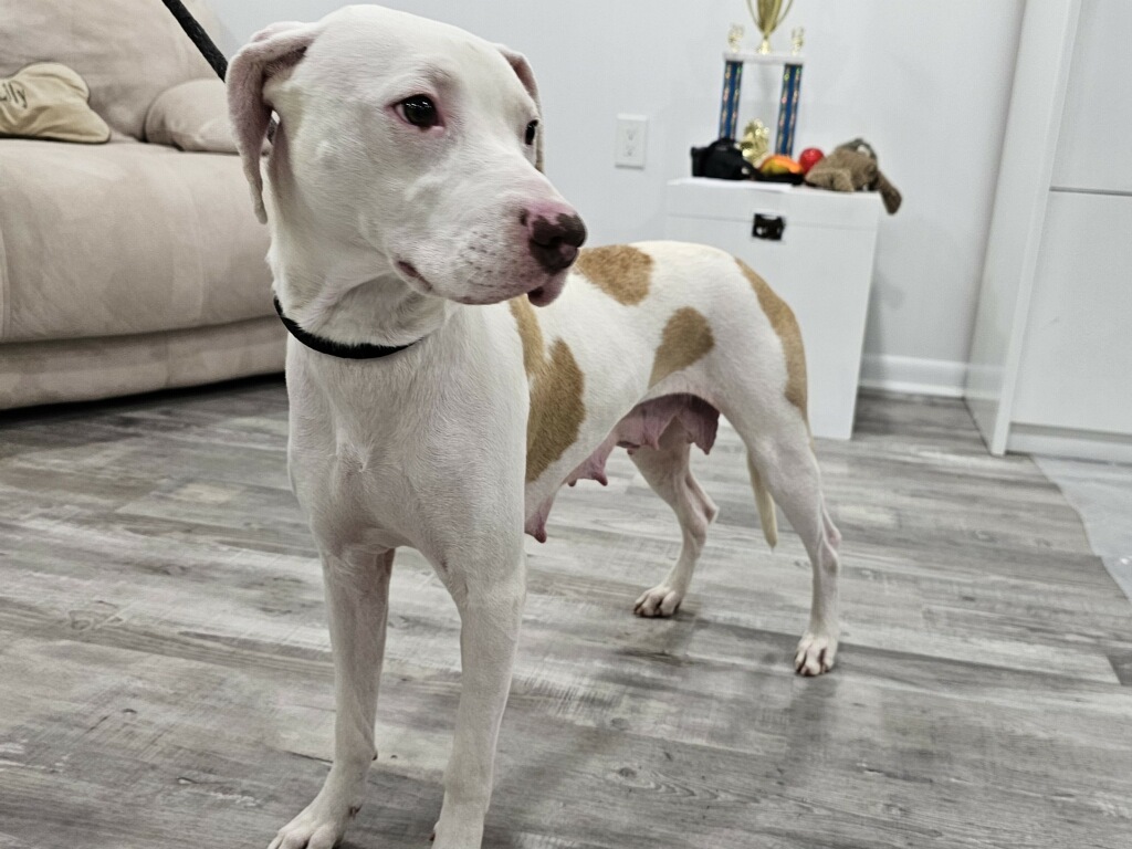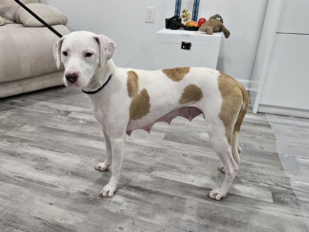 Saylor is Super Sweet! Saylor is a little over a year old, abouat 45 pounds and she is super sweet! She is currently living in a foster home in NJ and her foster mom loves her! She says Saylor enjoys going for long walks and she walks nicely on the leash with her nose to the ground sniffing everything. Saylor plays fetch but will abandon the game to play with another dog. This pup has a quiet sweet disposition with a medium energy level. Saylor is on a pretty predictable schedule so she hasn’t had any accidents in the house. And she will tell us when she needs to go out inbetween the stretches of time when we don’t head outside. Outside Saylor will get the zoomies but inside she prefers cuddling up to her people. Saylor is definately a snuggle bug! Saylor is good with other dogs and at the shelter she seemed to be good with cats. Oh, did we mention she Loves tummy rubs! Saylor is one of the gentlest souls weve met!” Saylor and her puppies were living in NC in a horrible neglect situation. According to the shelter in NC, she was starved before giving birth to 10 puppies. Saylor should have weight 50-55 pounds but she was less than 35 pounds and feeding her puppies. Her owners contacted the shelter and threatened to shoot Saylor and the pups if someone didnt take them. Luckily, the shelter was able to step in and save the family. They reached out to us FHDR and told us their story. We made transportation arrangement for them to come to NJ to live in foster homes. Saylor gives the best hugs and she is so gentle despite her owners abuse. If you have a furever home for this pet, please e-mail Furever Home Dog Rescue at FureverHomeDogRescue@gmail.com and request an adoption application. The breed and age of this pet is listed as is our best guess. We have no background info on who the mom and dad are. Please note we do not adopt puppies/dogs to homes where they will be left alone all day. We do not have a shelter facility you can visit. Our volunteers foster the dogs and pups in their homes once they have been vetted and transported here to NJ. Please read our homepage to read how the adoption process works. And, to read our many reviews - www.FureverHomeDogRescue.com. Thank you!