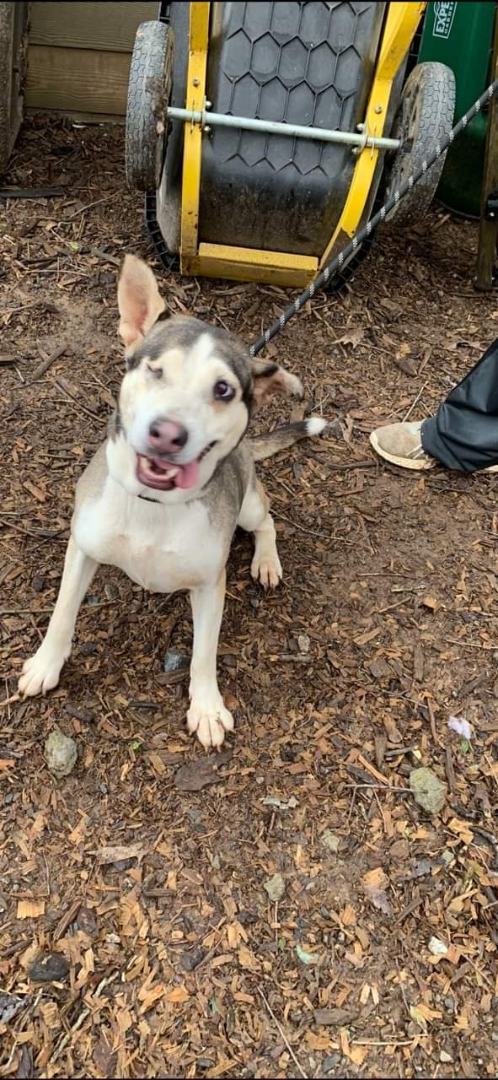 Pretty little Suka is a 6 year old Husky mix who weighs in at just under 43 lbs. She is such a sweet girl who loves playing with toys and getting snuggles from her people on the sofa. Suka loves people and gets along great with kids and other dogs. She would also need a fenced yard (or an indoor home that takes lots of walks) and like most Huskies she cannot be left unsupervised outside. Shes not an off leash kind of gal, but shes a real lover. Make an appointment to meet sweet Suka today! She did have one eye removed a while back and has some slight back hip issues and would benefit from staying on joint supplements.